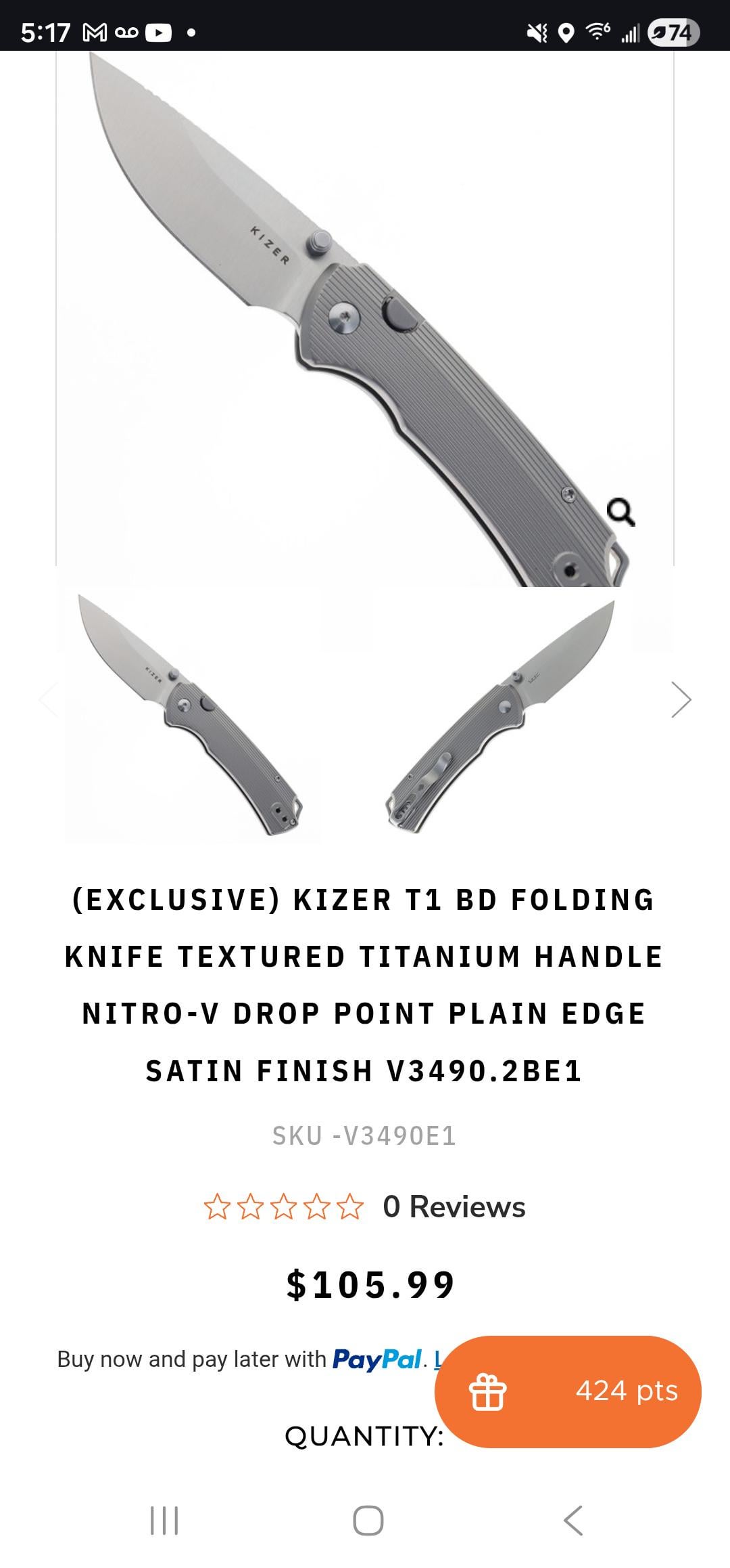Found this guy on WMK. Figured I should let everyone one know. I think $105 for titanium top liner lock with Nitro-V is a pretty good deal.