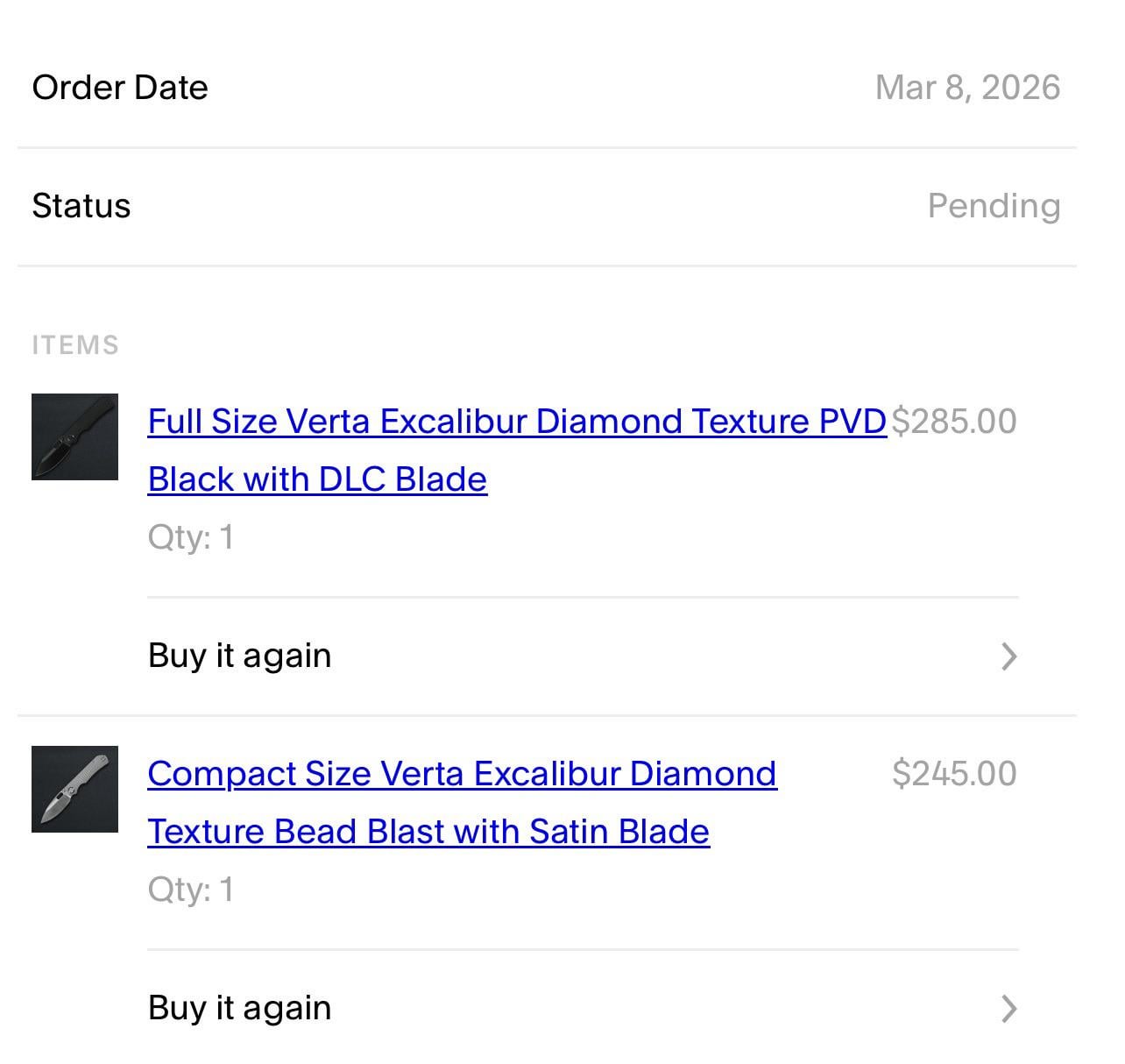 In KNIVES Wonder when these gonna are ship? March 10, 2026 Wonder when these gonna are ship?by Cultural-Ad6641 KnifeKnife ClubKnives Prev Post LV Washroom 26 March 10, 2026 Next Post Wurkkos HD05 is online. (Incl. Manual). March 10, 2026 Related Posts Microtech LCC Dual Action after reassemble March 10, 2026 NKD, the WE Rekker March 10, 2026 Maxace beetle 2.0 and Molsect loop. March 10, 2026Write A CommentYou must be logged in to post a comment.