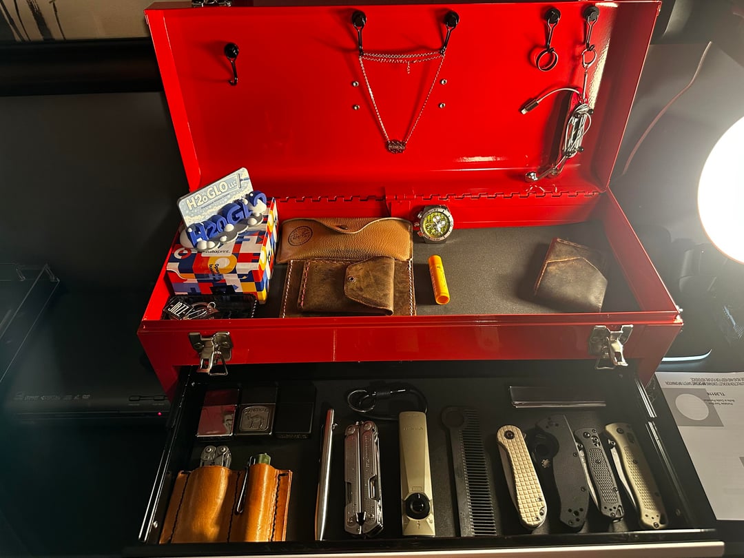 Forgot to mention. In the other drawers I have Zippo Fluid a small precision screwdriver set, knife lube, and blue loctite.