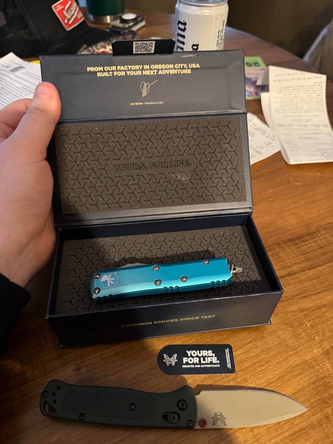 I went to go register this on the website for warranty and sharpening options and the website asked for a serial number that they said should be on the back of the blade…. literally just bought it today still have the receipt to bring back to the shop if it’s not legit. Microtech is in the case because I wore the benchmade out of the store. If more pictures are needed please lmk would be more than happy to give them