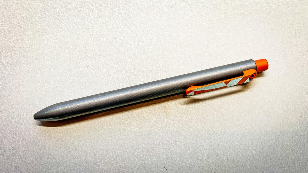 This is a stonewashed titanium side click from Tactile Turn x The Grey NATO. First nice pen I’ve purchased and have been using it daily for several months now. Can’t say enough good things about it.