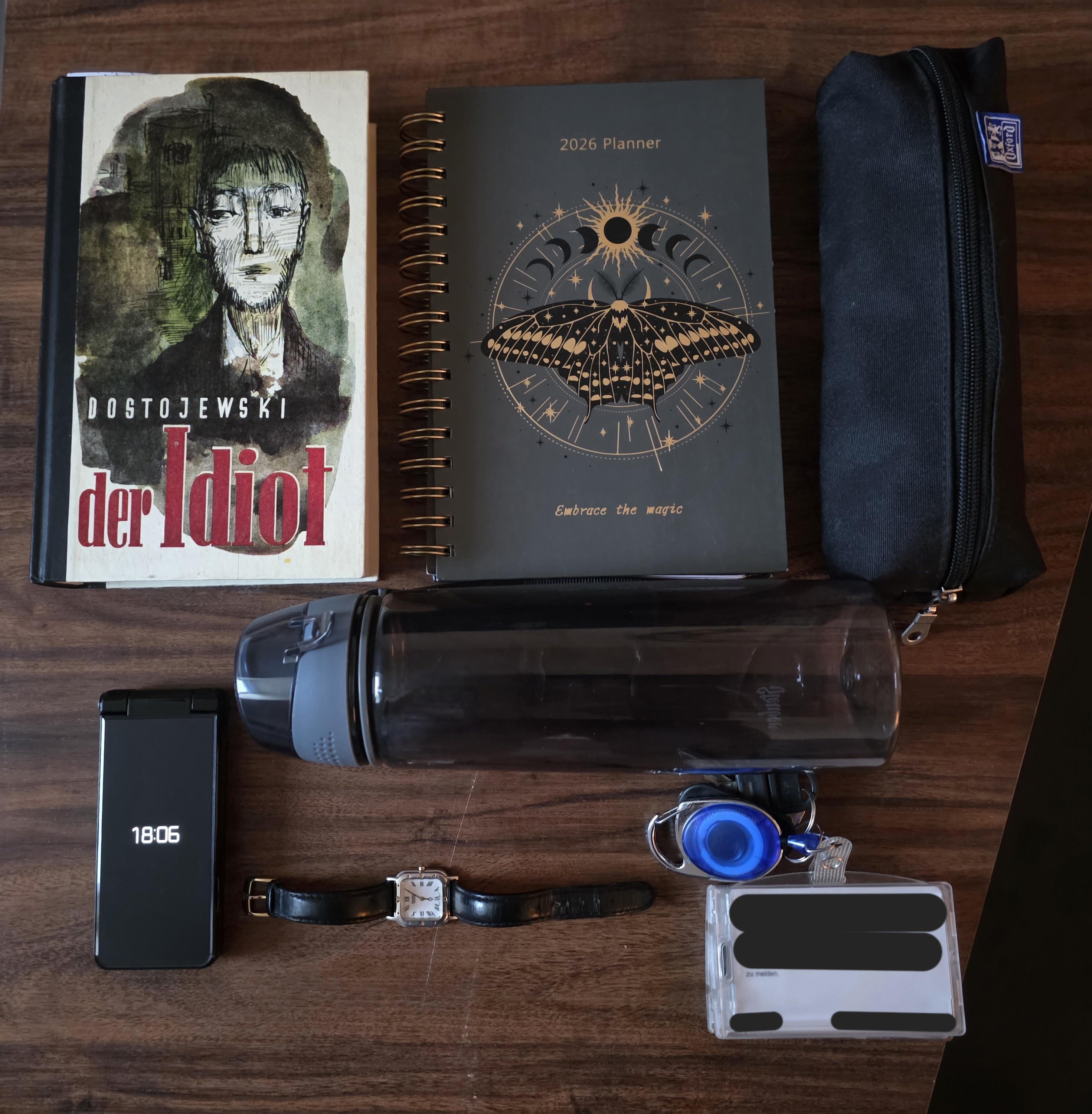 In EDC Current Work EDC March 12, 2026 My current Work EDC 🙂 Book: The Idiot by Fyodor Dostojewski Notebook/Planner Pencil case Water bottle Phone: Sharp Aquos 601sh Seiko Wristwatch Keys & Keycards by YangchenNujian EDC Prev Post My favorite Knives ATM. Have a Button lock flipper Praxis in its way that may replace the Qubit. March 12, 2026 Next Post Advice/question March 12, 2026 Related Posts New addition today March 12, 2026 North Georgia Cabin Carry March 12, 2026 Thursday’s duo is my Expedition from the early 2000’s and the Vosteed Raccoon March 12, 2026Write A CommentYou must be logged in to post a comment.