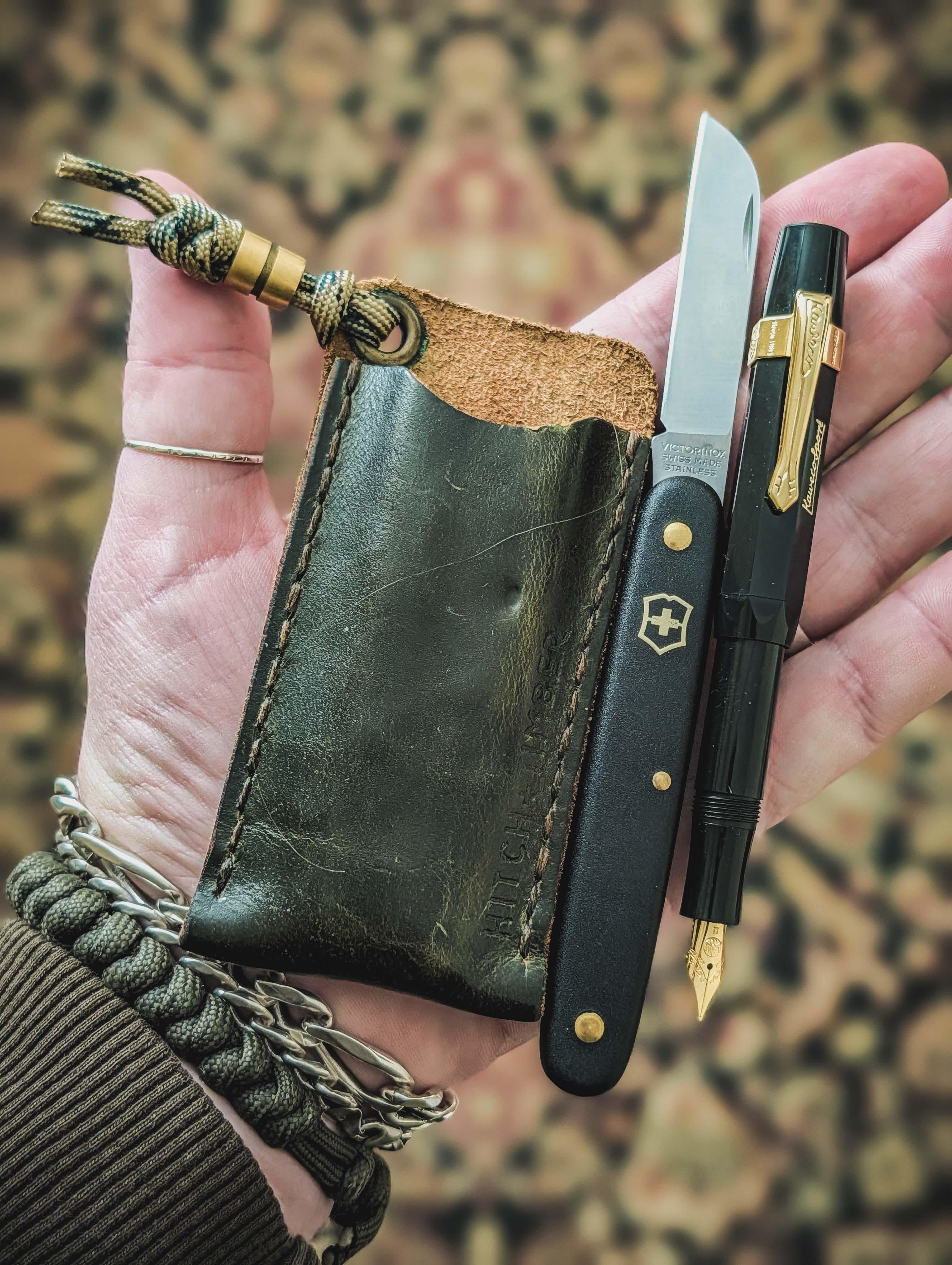 Hitch & Timber EDC slip w/ Z&C Metalworks brass bead, SAK Florist, Kaweco Sport fountain pen.