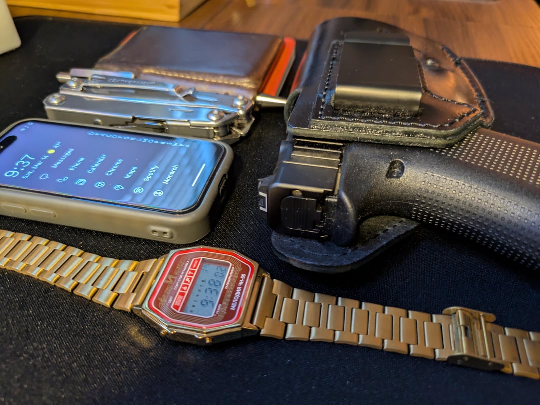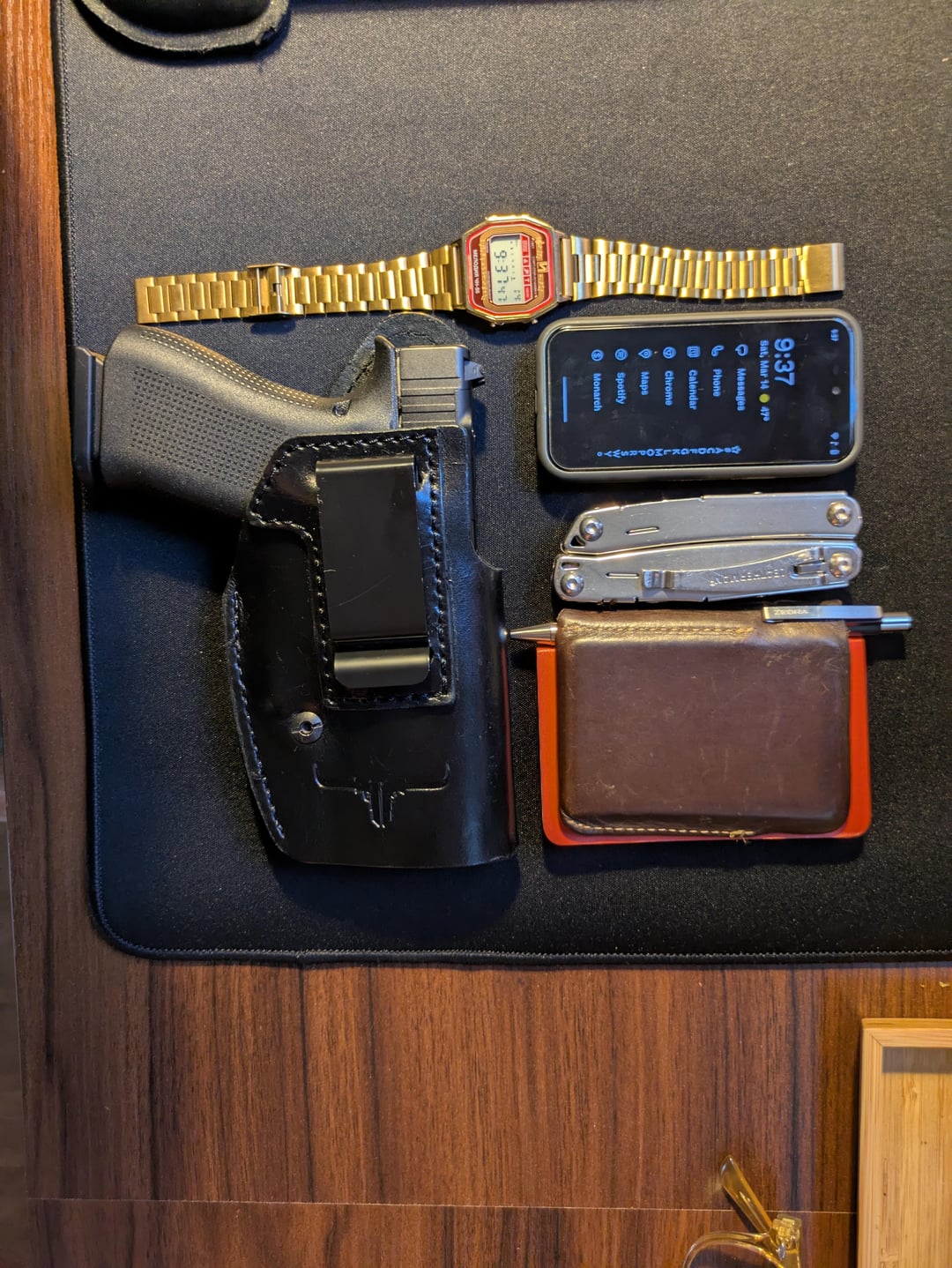In EDC My EDC, M23 March 14, 2026 (Top left first)Elektronika 55bG43x MOS w/ Texas IWB holsterBlueFox NX1Leatherman WingmanHide&Drink wallet, modified to hold Moleskineby everywherenever EDC Prev Post Cleaning tips March 14, 2026 Next Post One of my Prized Creations – Weltool T2 Tac w/ 3,000k SFT40 – Simple. Flashlighty. March 14, 2026 Related Posts Lanyard cost nah I’ll teach myself March 20, 2026 Vacation to Boston carry, what is your travel carry like? March 20, 2026 Pocket Dump March 20, 2026 1 Comment AutoModerator 6 days ago Thank you for posting to r/EDC! Include a detailed item list (make/model) within **1 hour** of submission. Lists can go in the title, a comment, or the image. Posts without lists will be removed. If you have already provided a list, not further action is needed, thanks | [FAQ](https://www.reddit.com/r/EDC/wiki/faq)*I am a bot, and this action was performed automatically. Please [contact the moderators of this subreddit](/message/compose/?to=/r/EDC) if you have any questions or concerns.*Write A CommentYou must be logged in to post a comment.