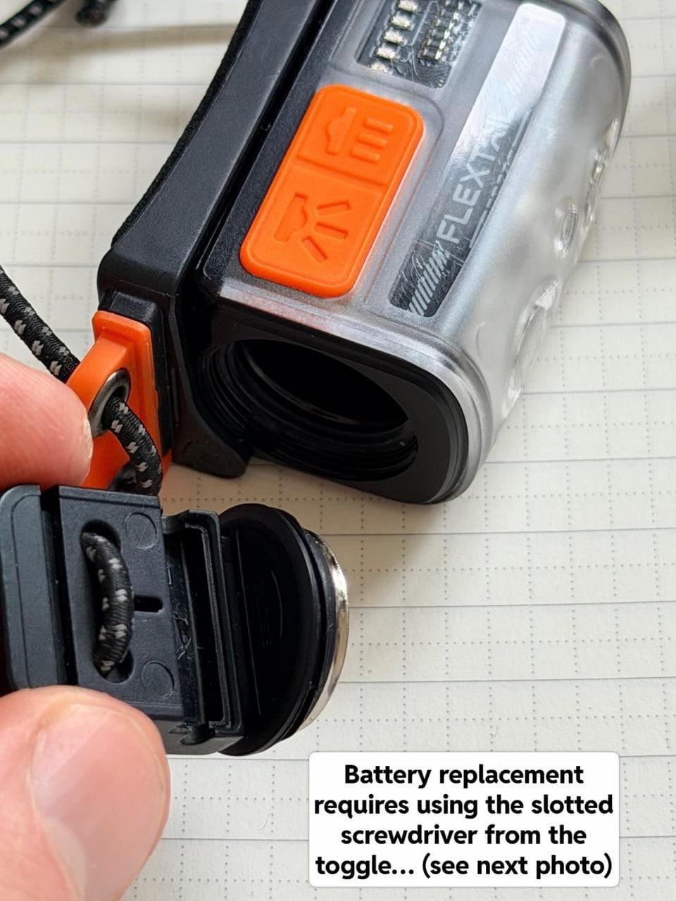 * The battery replacement “door” requires you to use an in-built slotted screwdriver in the toggle, meaning you need two hands to undo it, and you can drop the door. Replacing battery in the dark is difficult by feel.