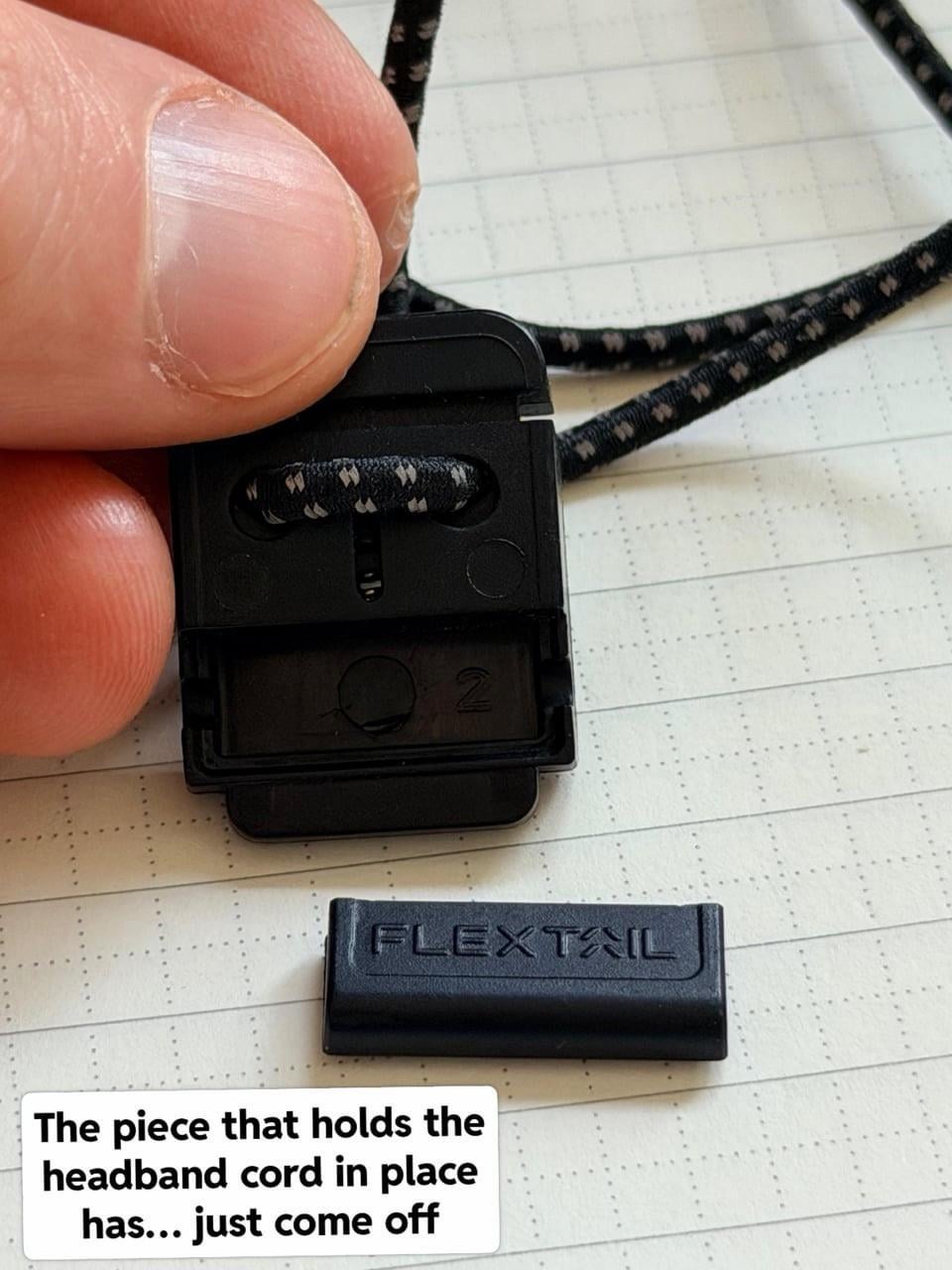 * The two pieces of the headband cord are secured in the toggle… except the plastic piece broke off while replacing a battery at home. Now the cords are acting independently, which isn’t a big deal but shows lack of quality.