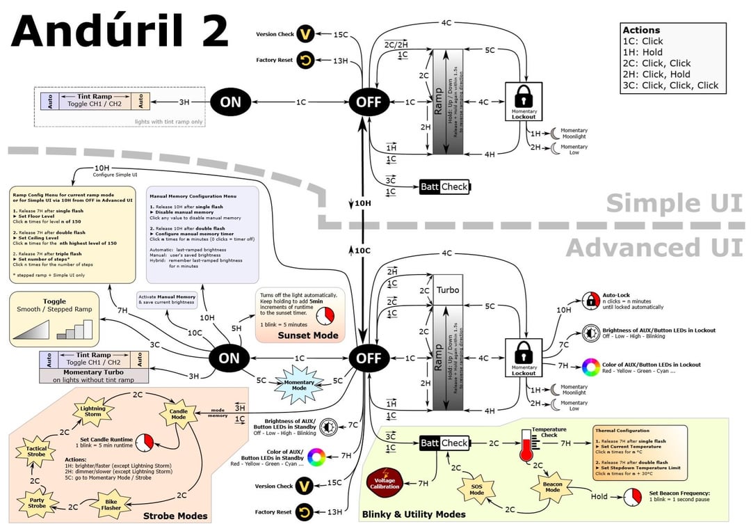 The TS11 features the Andúril 2 interface with auxiliary LEDs. This provides precise control over ramps, modes, and strobe functions. While the interface is highly configurable, it may take a first-time user a short adjustment period to fully master its range of functions. Once familiar, it offers unparalleled flexibility for different lighting situations.