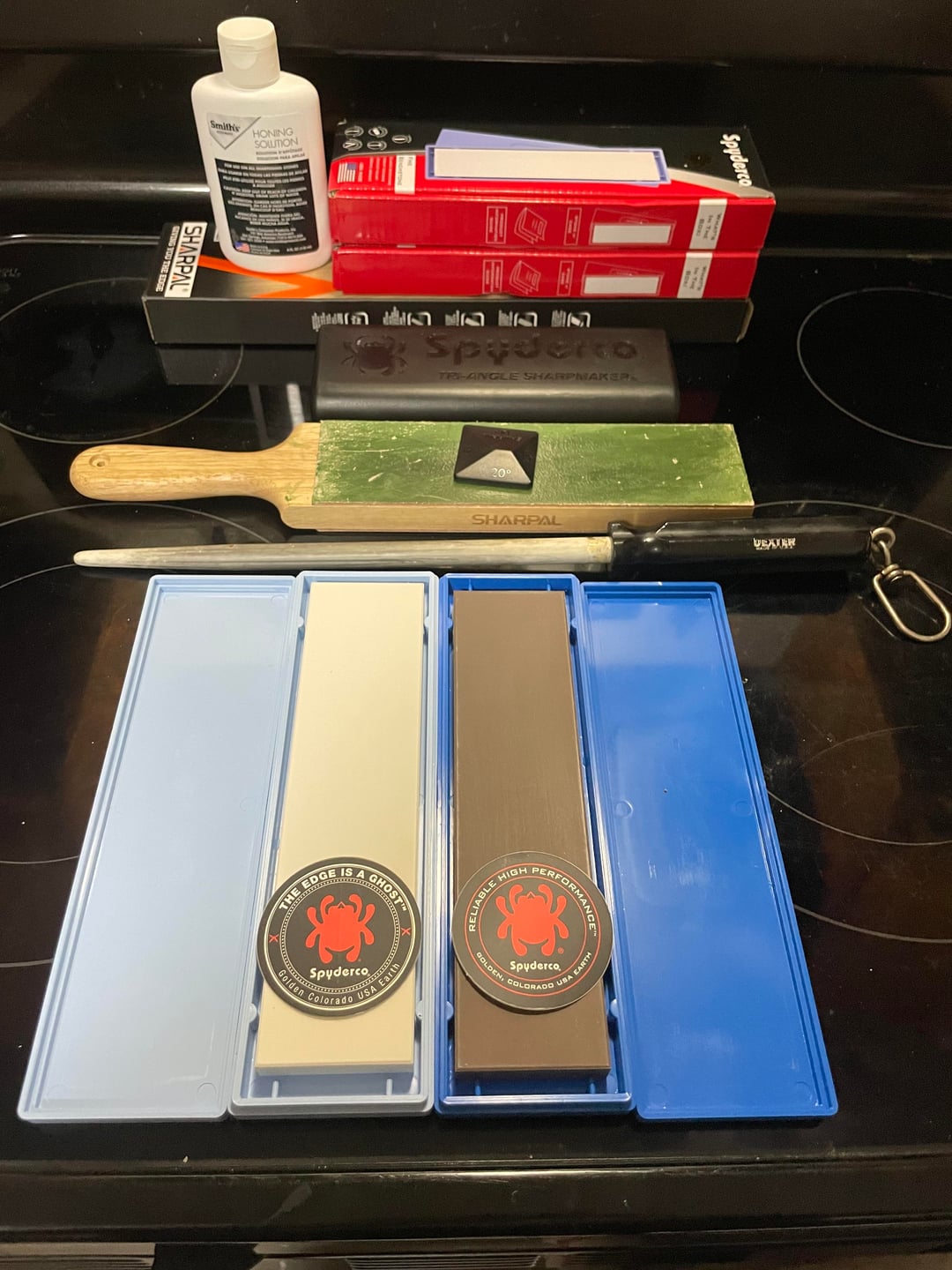 Just bought a new strop, my antique one from the early 1900’s finally shit the bed. Also got these two Spyderco stones off eBay, looking forward to see how they work out. I’ve had the Spyderco triangle sharpener for a number of years and have been happy with the results, expect the same from their flat stones. The Dexter rod is ultra fine.