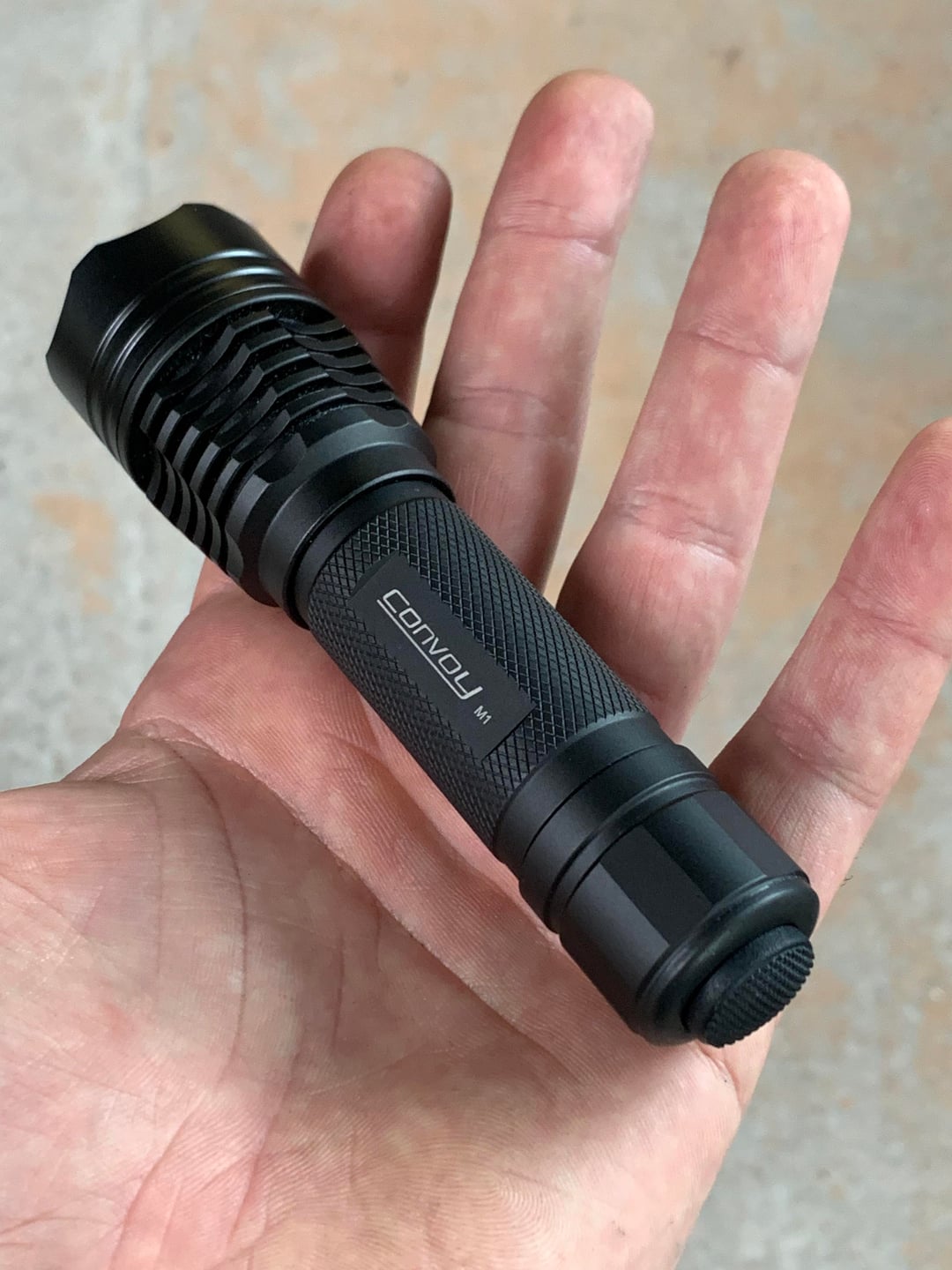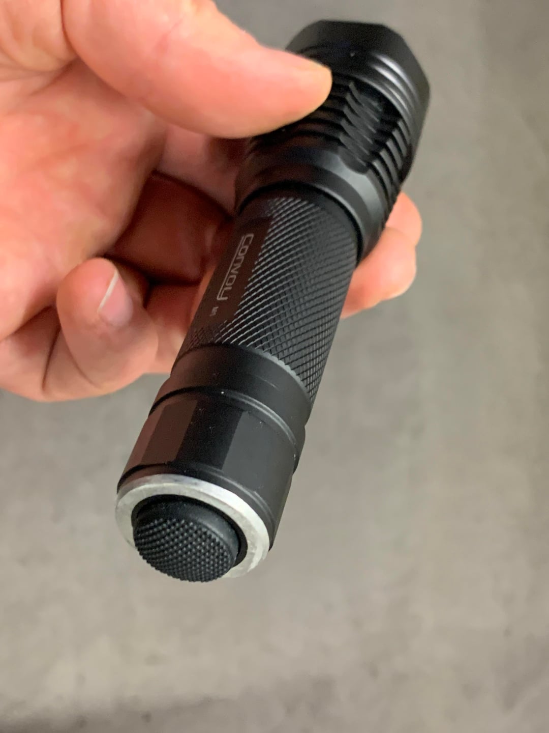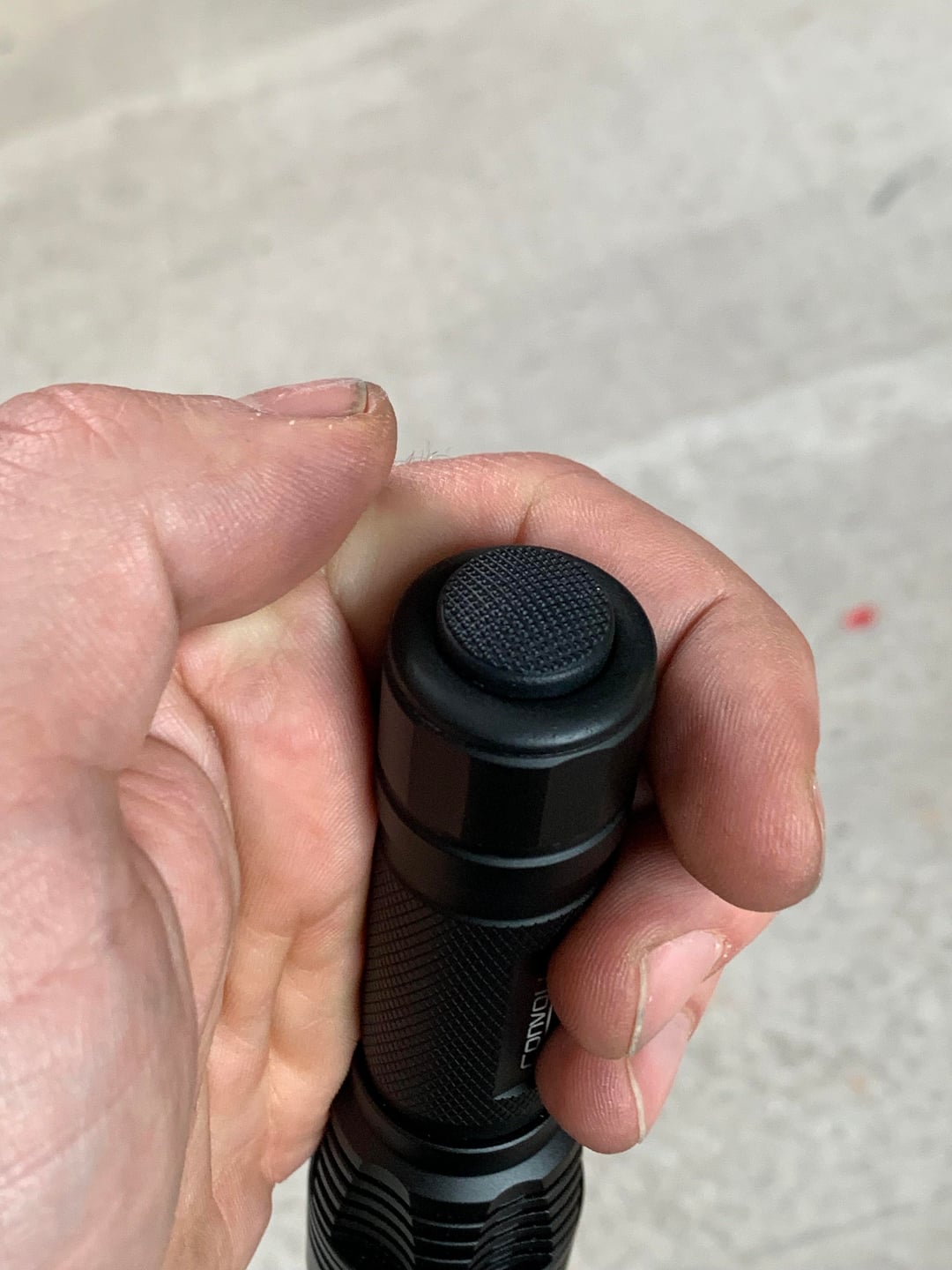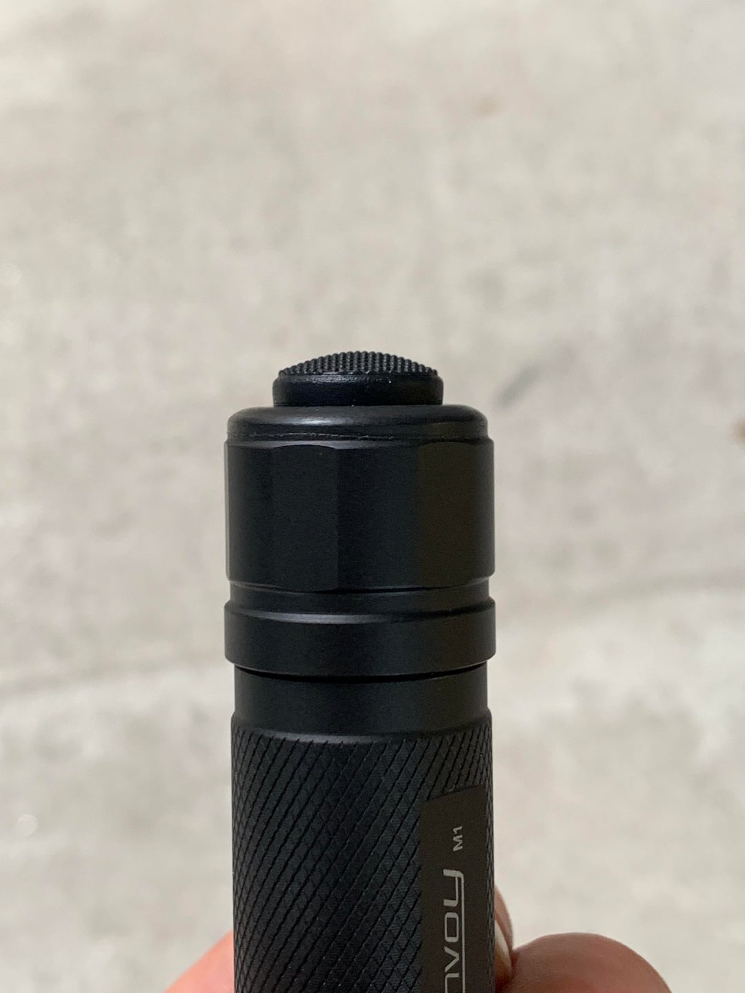 I got a new Convoy M1 with SFT42R 5000k and decided to file the button/switch guard away so I could better access it. I’ve also installed a forward clicky. The bare aluminum around the switch got spray painted matte black.