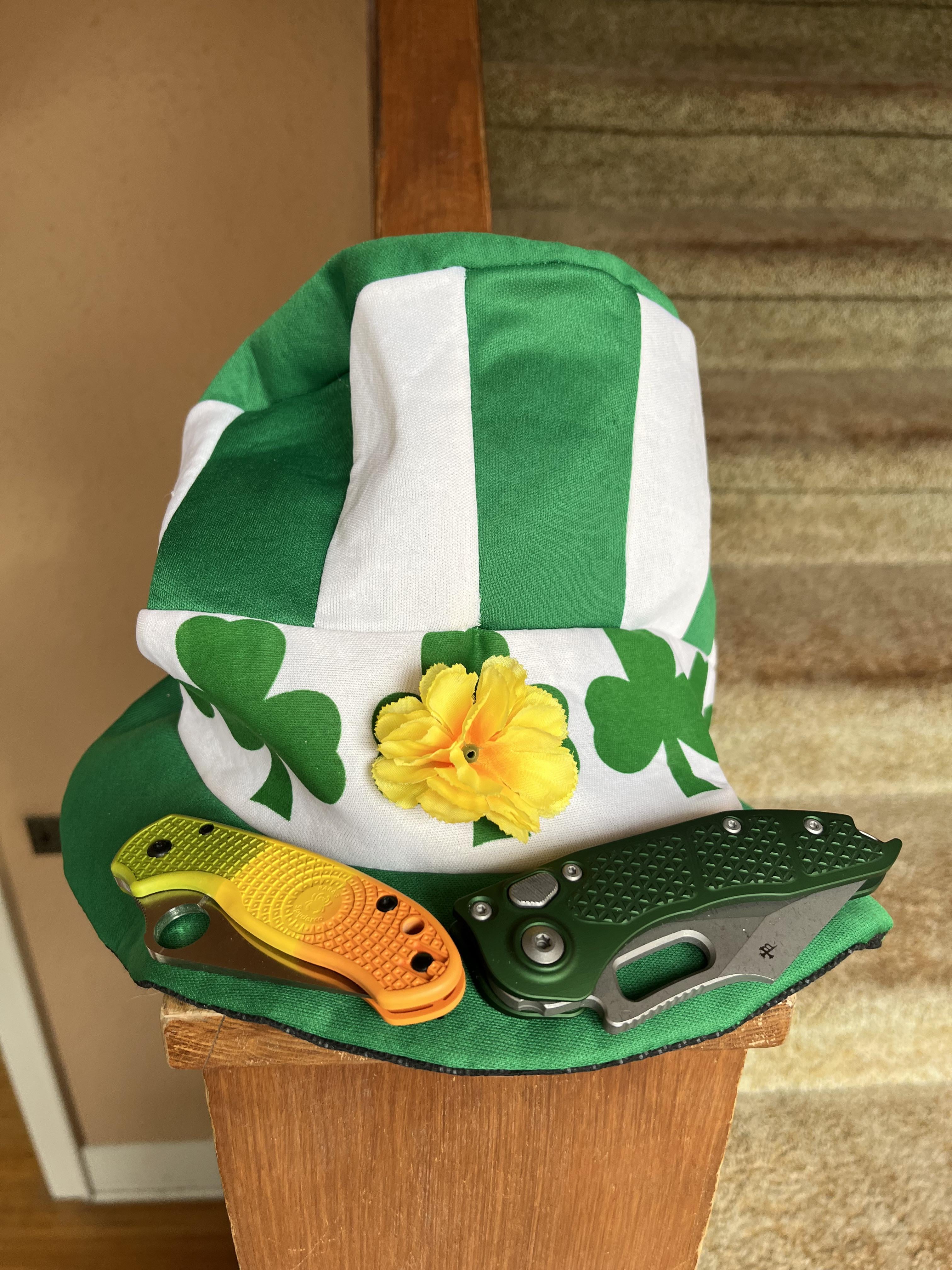 My St. Paddy’s Day carry, Spyderco Para 3 Salt in Magnacut; Microtech Stitch A in M390 blade steel.