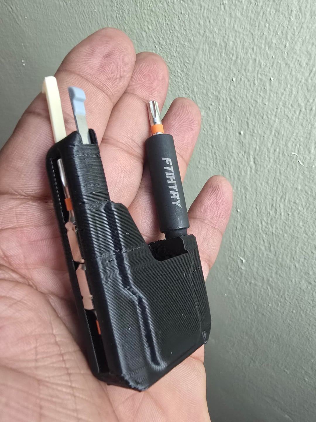 Inclusion of a case containing three bits, a 1/4" extension, a toothpick, and tweezers.