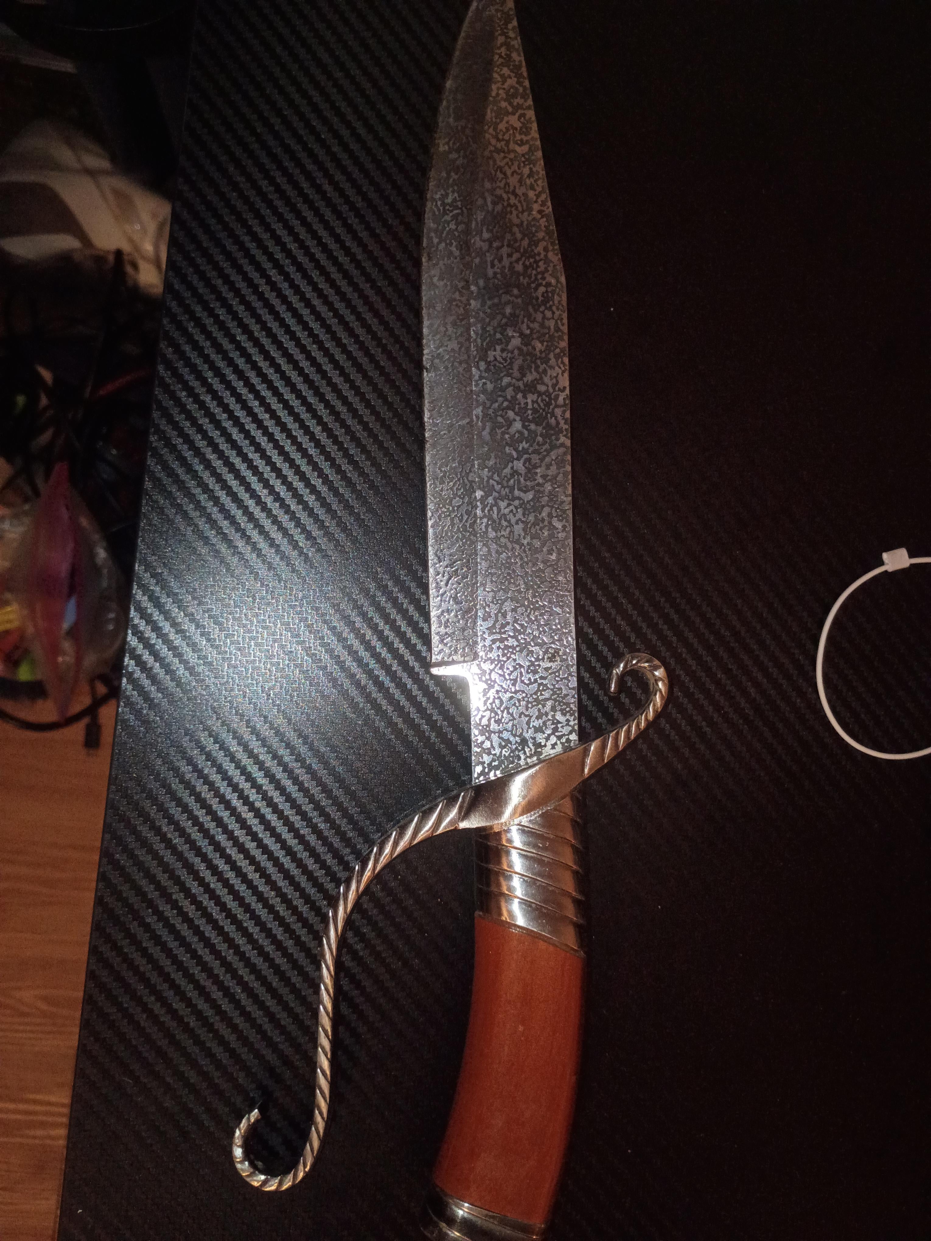 It is an “art knife” (i.e., for display) loosely based on the English style bowie knife with a stylized “S” type guard.