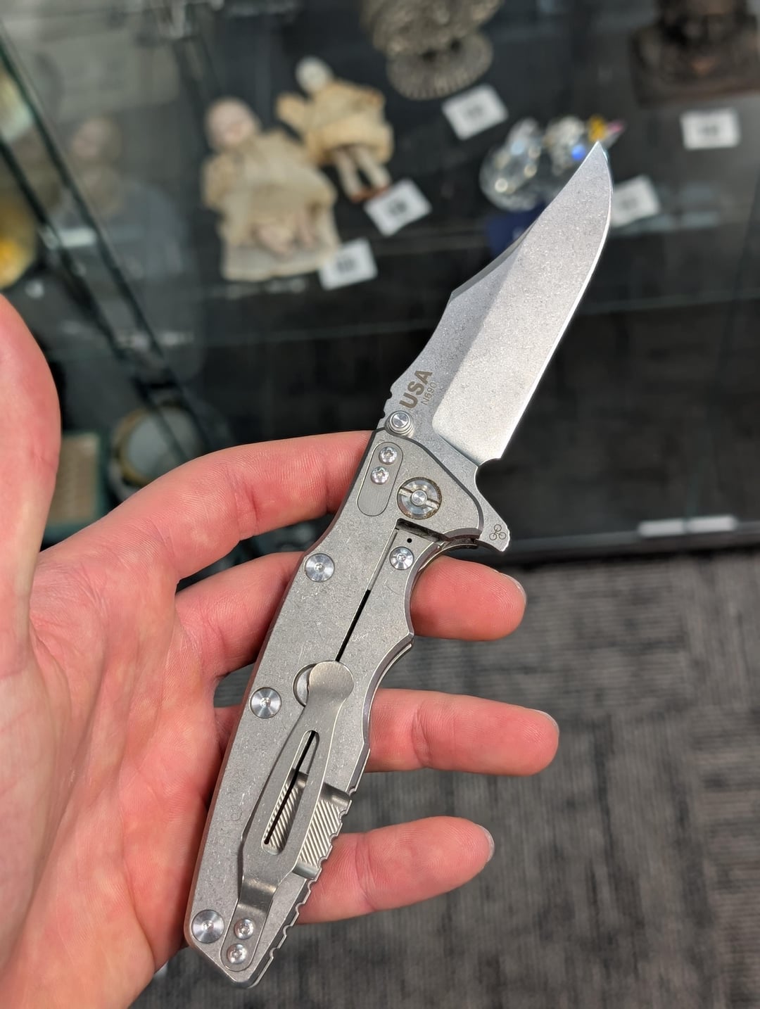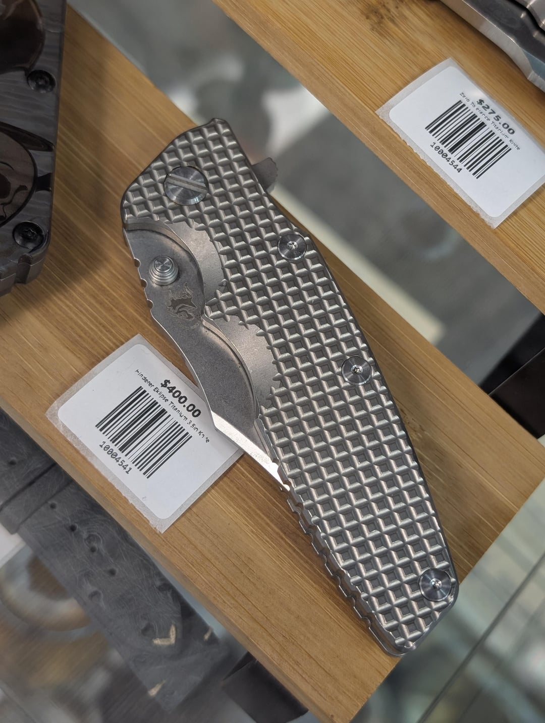 locally, a new collectible and art store opened down the street from me and I found these! The seller rents display shelving like a flea market and the lady working couldn't provide any details for these knives. I was interested in the Hinderer but I can't find much information about the N690 steel used. Do any of these appear to be clones?