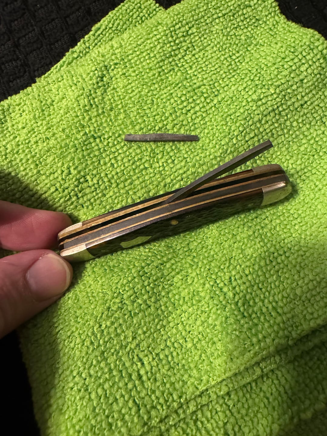 I recently started bringing my grandfathers knives back to life (last pic) but one had a piece fall out of the back. I’m learning about knife mechanics but I am not an expert by any means. Is it possible to save this or is it just done? Also, if you notice anything about the other knives I could push further I’d love the respectfully feedback.