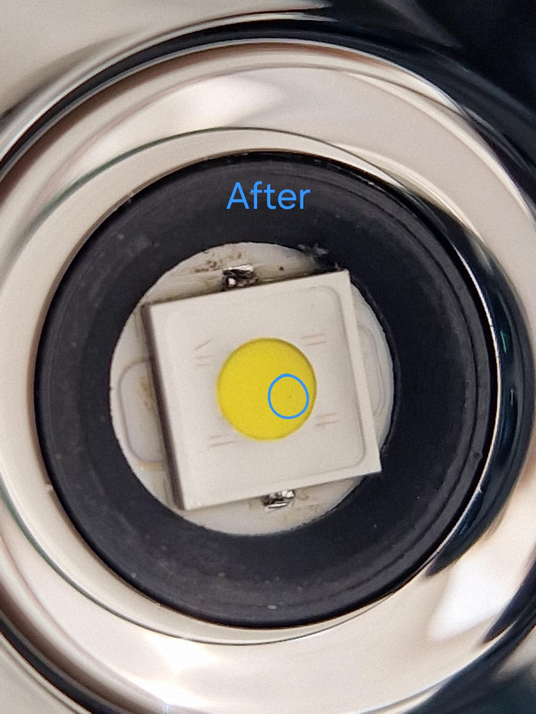 I received this Convoy L21B with an SFT42R yesterday and after a closer look I observed a small black dot on the emitter. I reached out to Simon and he suggested cleaning it with a cotton swab. I also used some isopropyl alcohol.