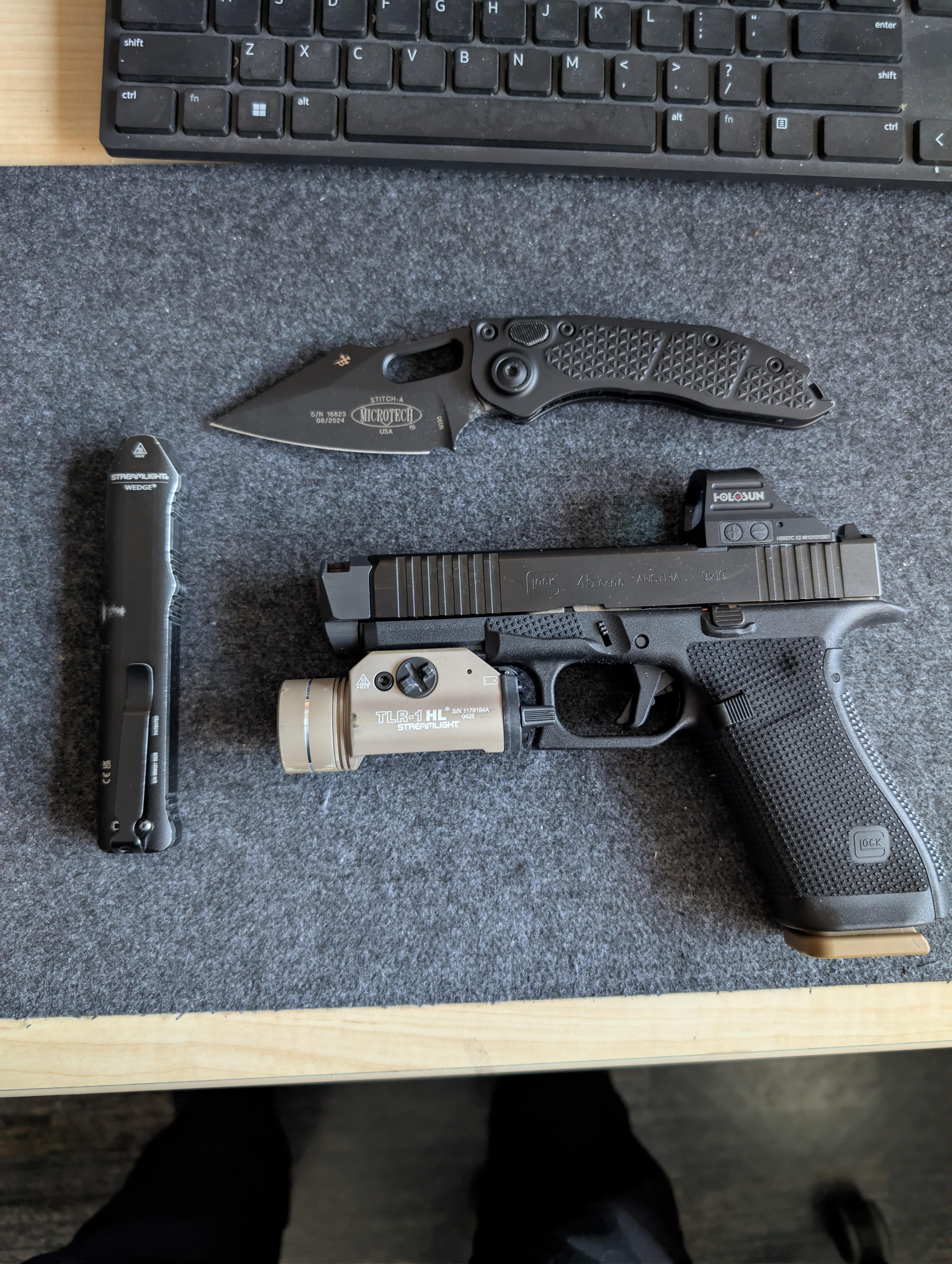 In EDC Weekend, EDC March 21, 2026 Streamlight wedge ,microtech stitch A and Glock 45 Gen 6 by mos948 EDC Prev Post Trying to read more March 21, 2026 Next Post Dark arts March 21, 2026 Related Posts Updated carry March 22, 2026 Lightweight EDC March 22, 2026 Sweet T Saturday: Winkler X Field Ethos Sweet T in Ameragrip #NKD March 21, 2026 1 Comment AutoModerator 3 hours ago Thank you for posting to r/EDC! Include a detailed item list (make/model) within **1 hour** of submission. Lists can go in the title, a comment, or the image. Posts without lists will be removed. If you have already provided a list, not further action is needed, thanks | [FAQ](https://www.reddit.com/r/EDC/wiki/faq)*I am a bot, and this action was performed automatically. Please [contact the moderators of this subreddit](/message/compose/?to=/r/EDC) if you have any questions or concerns.*Write A CommentYou must be logged in to post a comment.