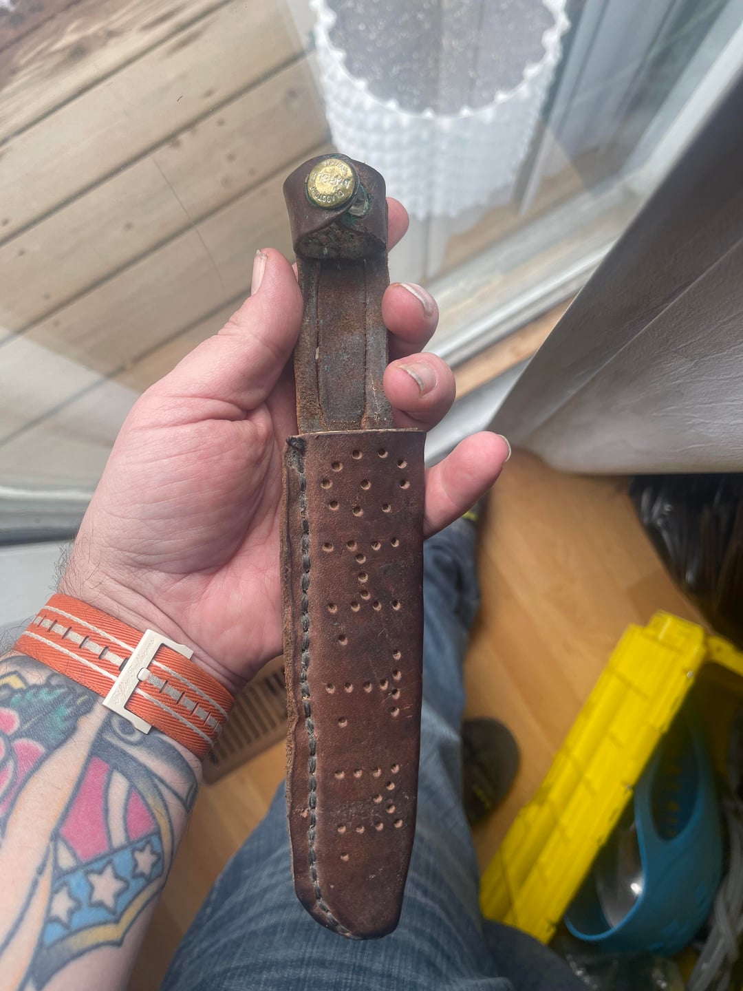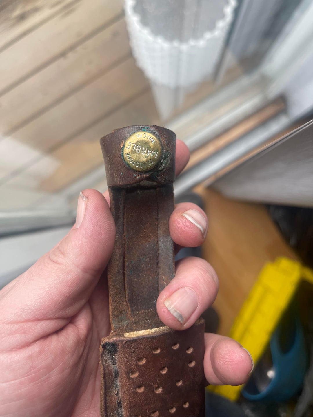 It was stored in a mismatched sheath from a Marble Knife. How my great grandfather got the sheath I’m unsure. We are Canadian although he did spend time in America so where he bought the blade I can’t be sure. The sheath is cool af as well. I did throw in a few pics of it too.