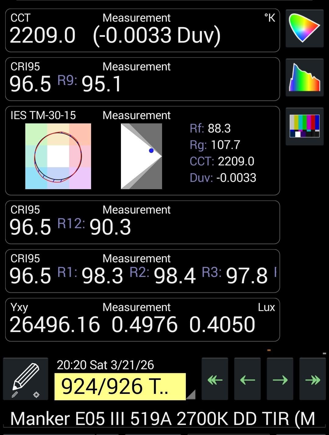 Swapped the CW emitterr for Nichia 519A 2700K DD and replaced the OP reflector with 17mm Convoy 20 deg beaded TIR and added d-c-fix to cleanup any close up artifacts stemming from the TIR beading. Beam is super-smooth and the 2200K CCT (duv -0.0033) is awesome (CRI 96)