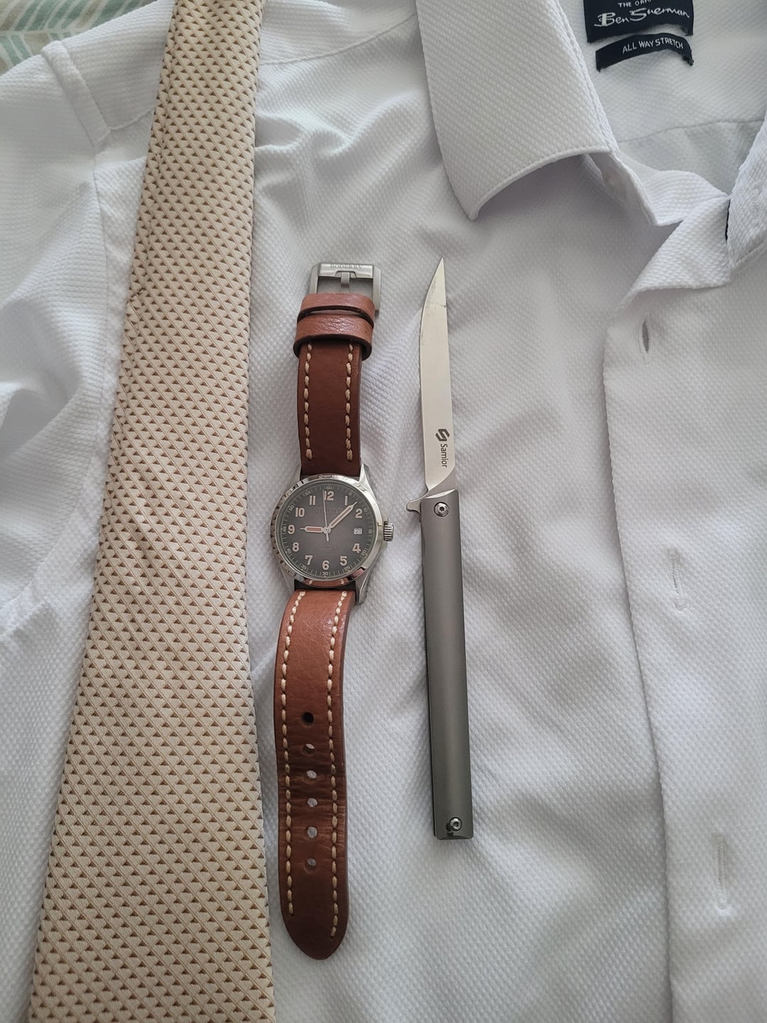 In EDC Sunday Dress up. . . Berny Watch and Samior Knife March 22, 2026 Sunday Dress up. . . Berny Watch and Samior Knife by davect01 EDC Prev Post Three is one… @direpacific Reaver @phoenixtoolworks Deadbolt @hinderer_knives Bowie #threesome #direpacificblades #phoenixtoolworks #hindererknives March 22, 2026 Next Post Tutare Knives March 22, 2026 Related Posts Sunday Funday. March 22, 2026 Container value (weight vs utilization)? March 22, 2026 I can’t decide which one to EDC March 22, 2026 1 Comment AutoModerator 3 hours ago Thank you for posting to r/EDC! Include a detailed item list (make/model) within **1 hour** of submission. Lists can go in the title, a comment, or the image. Posts without lists will be removed. If you have already provided a list, not further action is needed, thanks | [FAQ](https://www.reddit.com/r/EDC/wiki/faq)*I am a bot, and this action was performed automatically. Please [contact the moderators of this subreddit](/message/compose/?to=/r/EDC) if you have any questions or concerns.*Write A CommentYou must be logged in to post a comment.