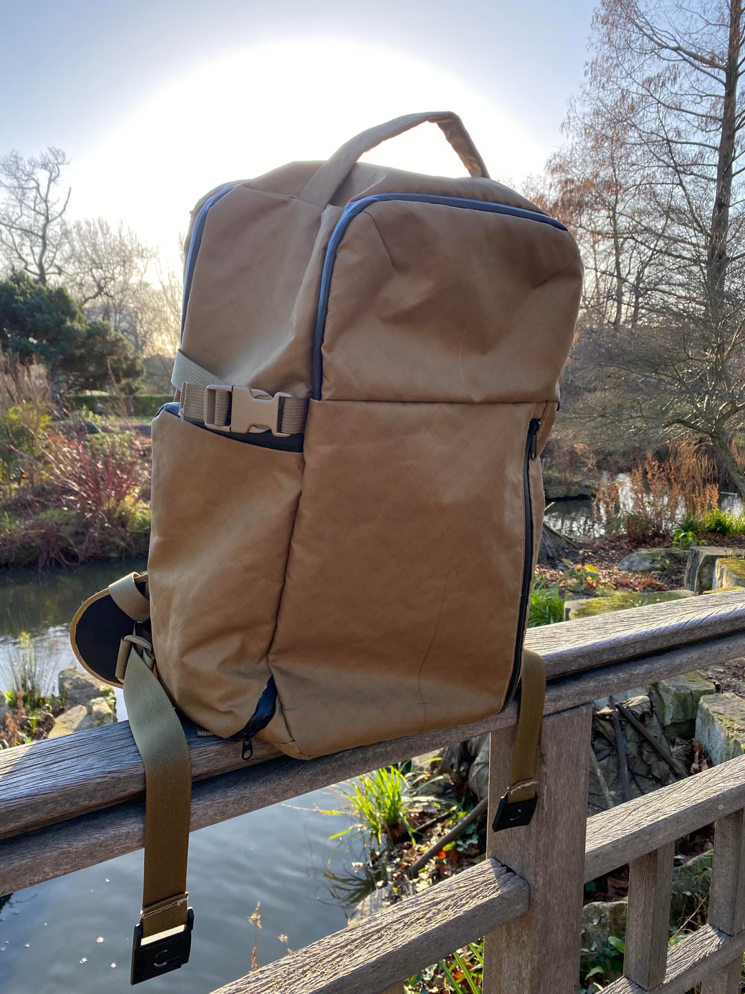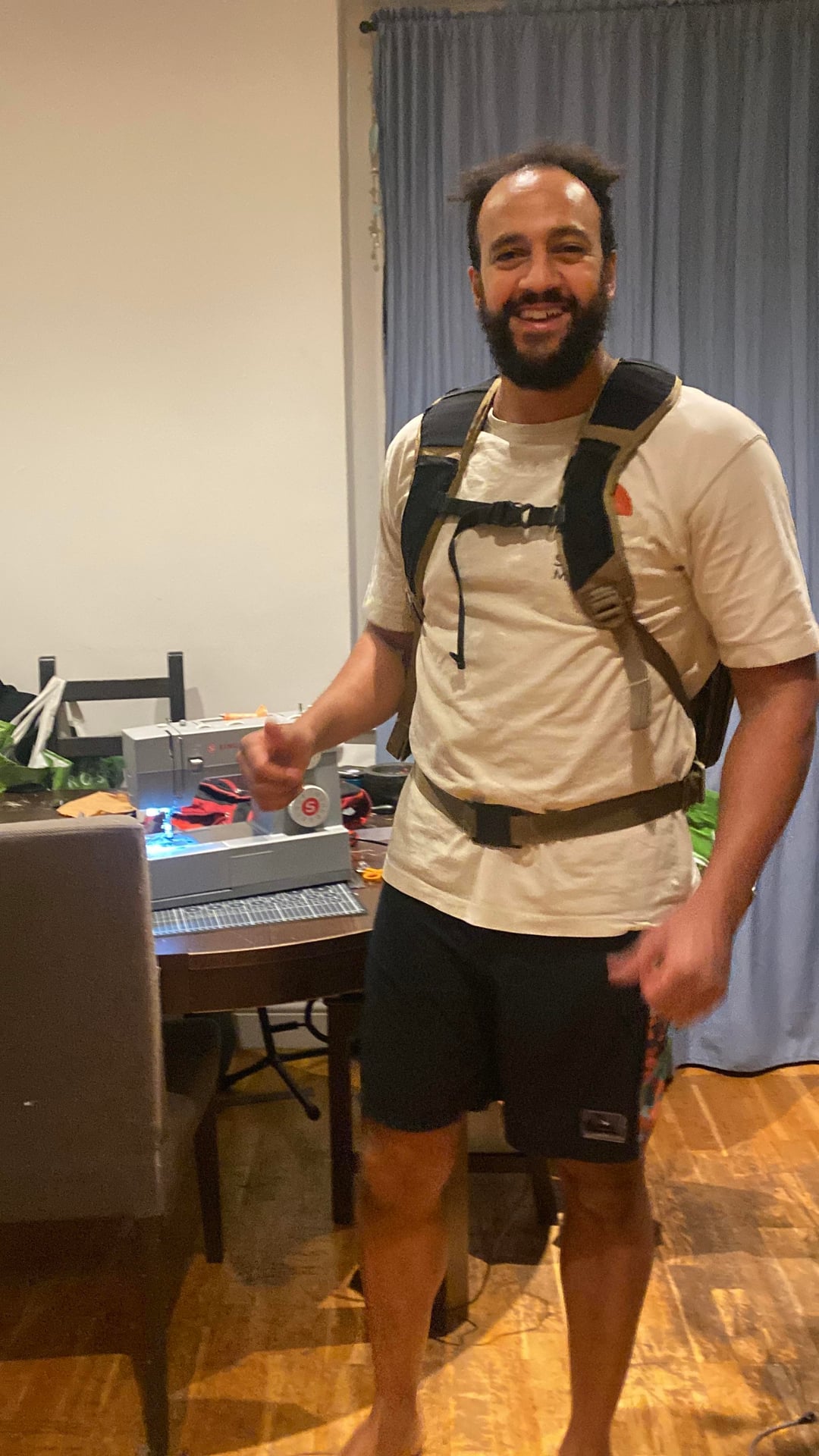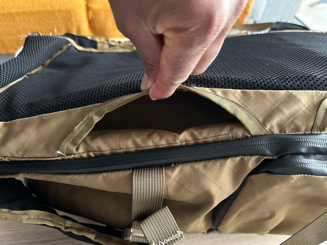I hand-made a prototype backpack to test ideas before going to a factory.