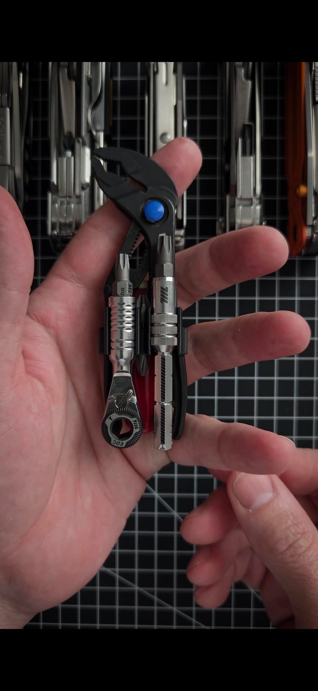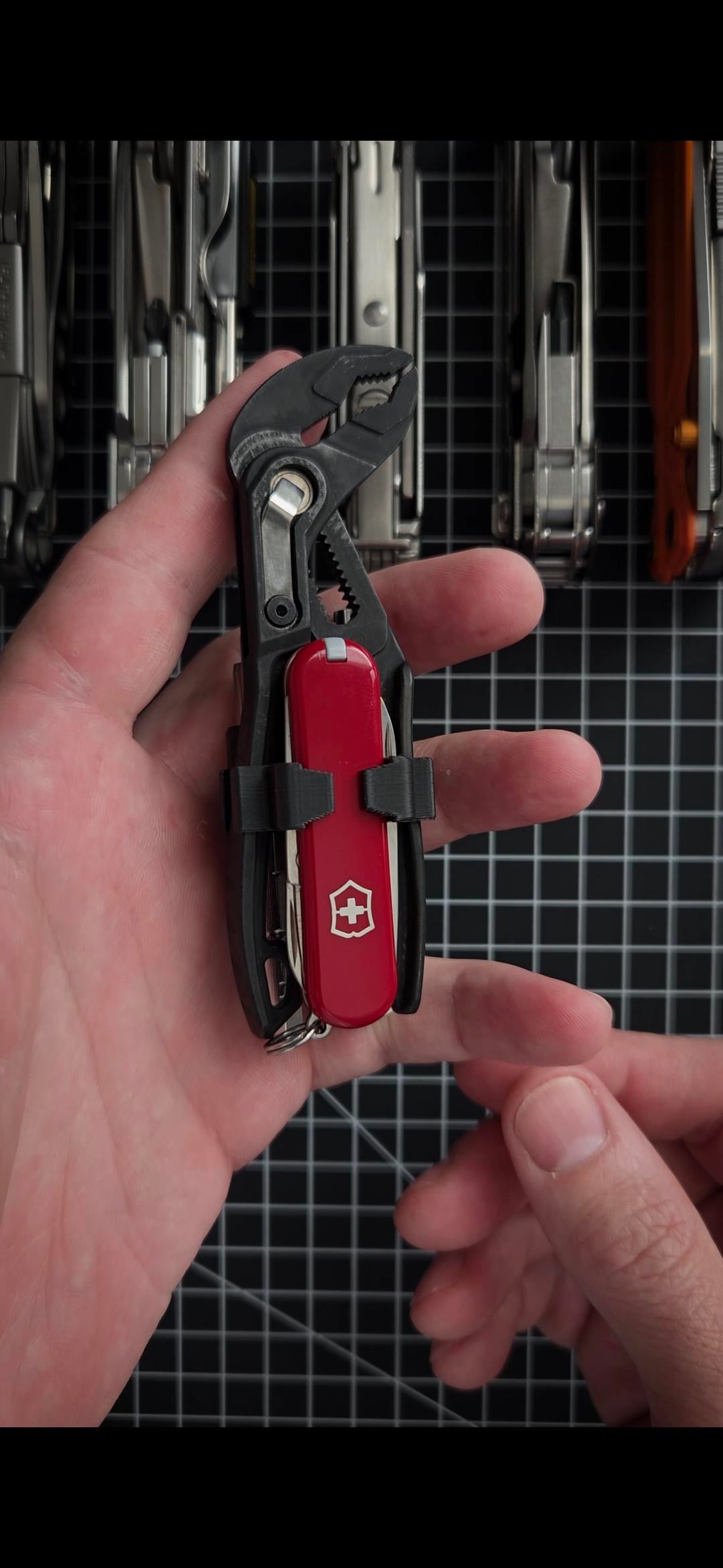 I designed this 3d model that allows you to carry a 58mm SAK, pair of Workpro Mini Pliers and a 711l Mini Ratchet.