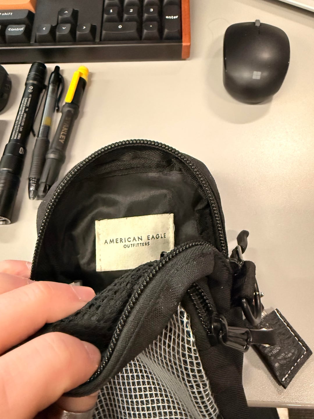 Got this pouch at american eagle like 8 years ago. has a detachable sling strap i keep in my backpack if needed. holds a surprising amount of stuff, constantly rotating things in and out. Can even off-body my ccw with the flush mag and minimal holster. 9+1 .45acp in this little thing. The grayest man.