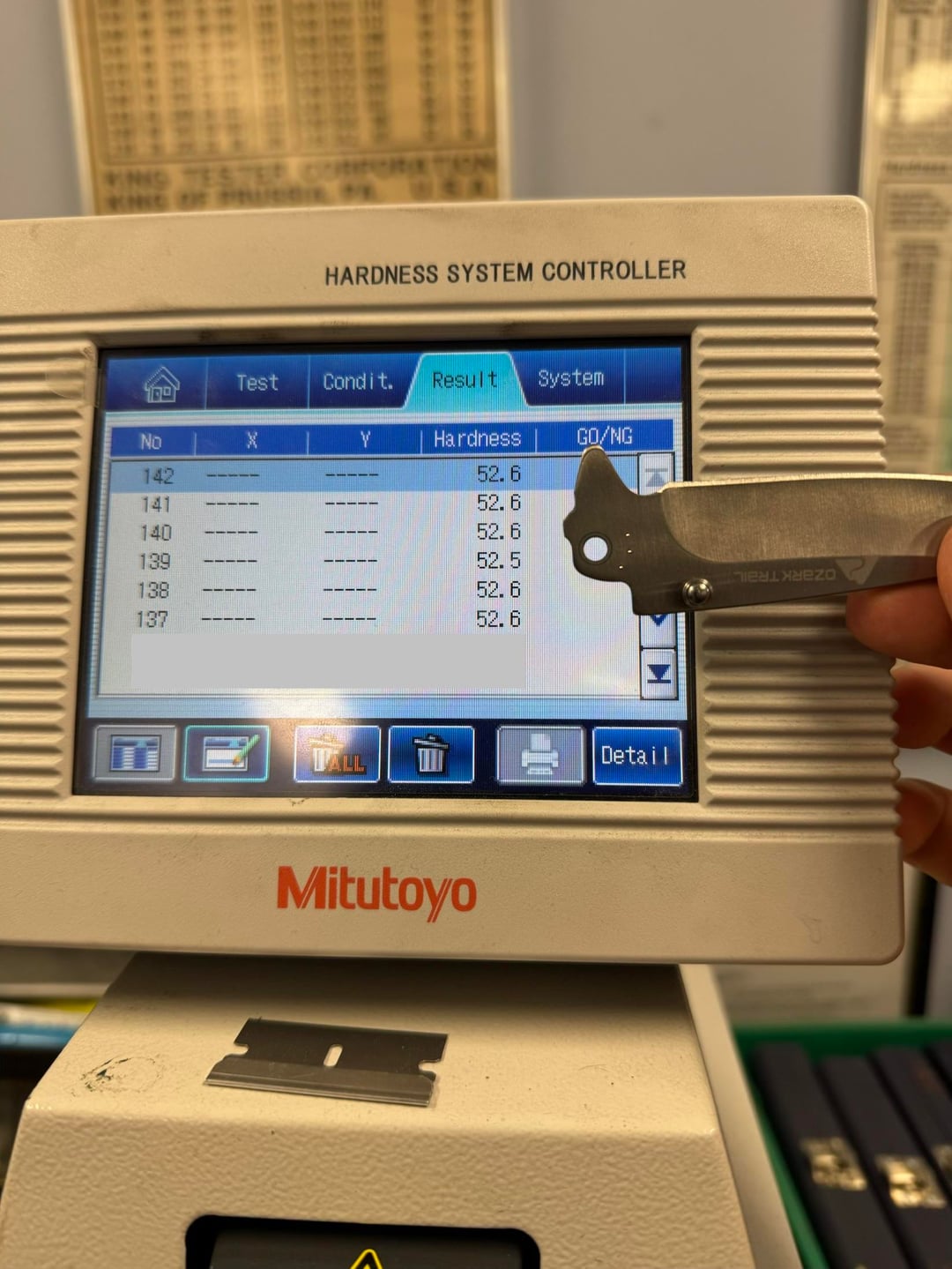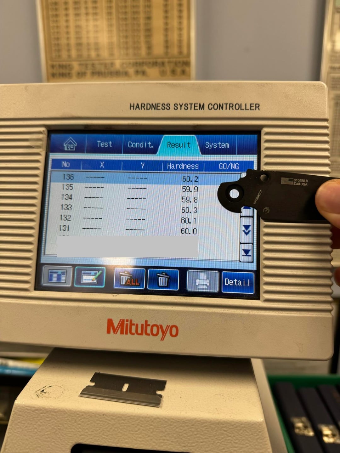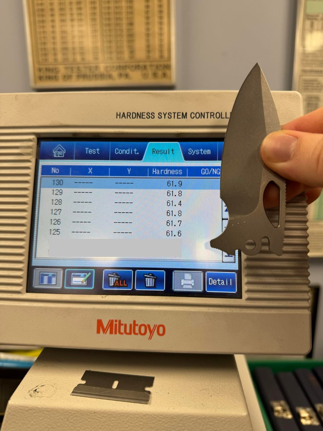 Verified on 51.88, 59.8, 62.7 HRC Verification Blocks.