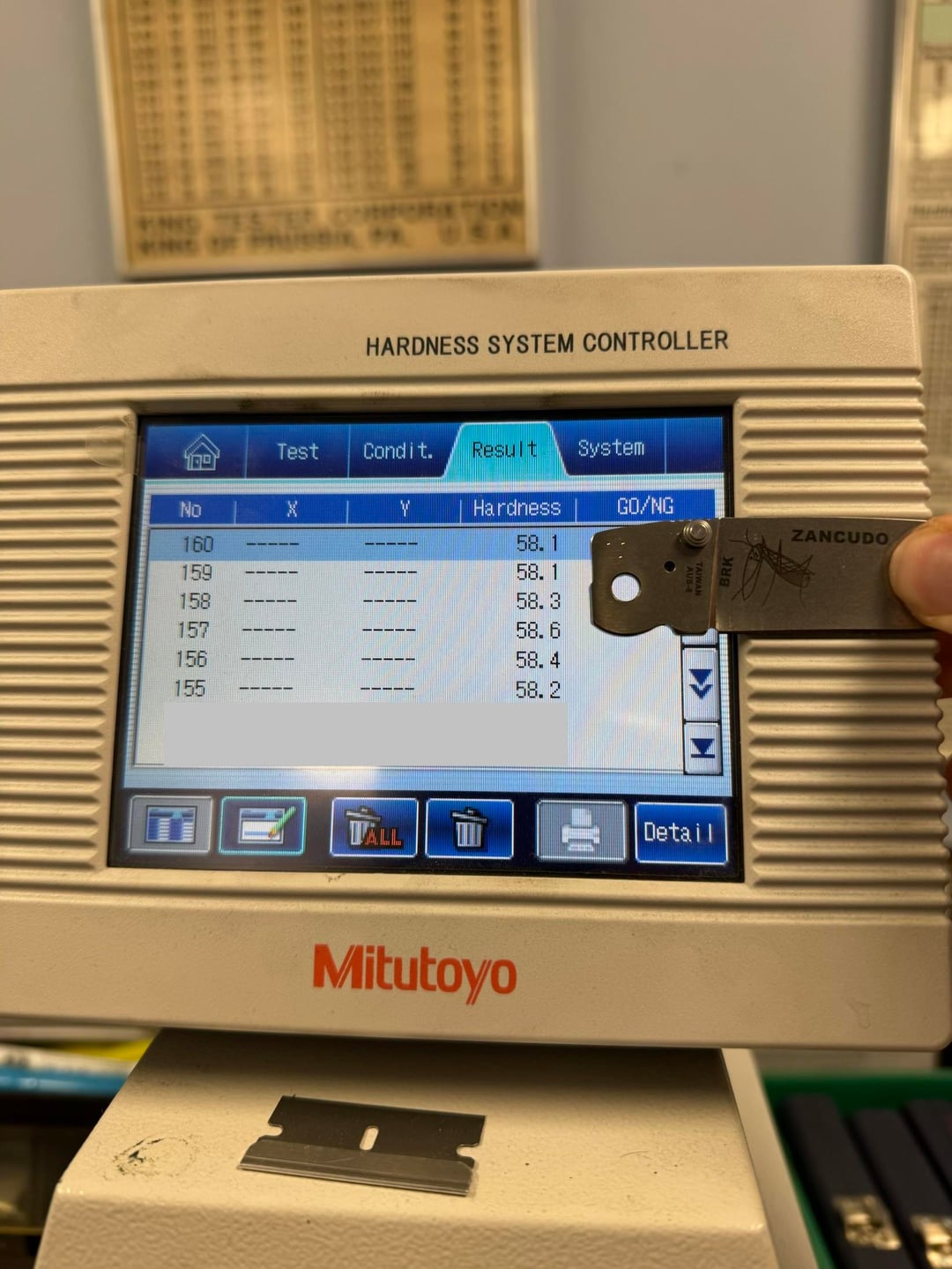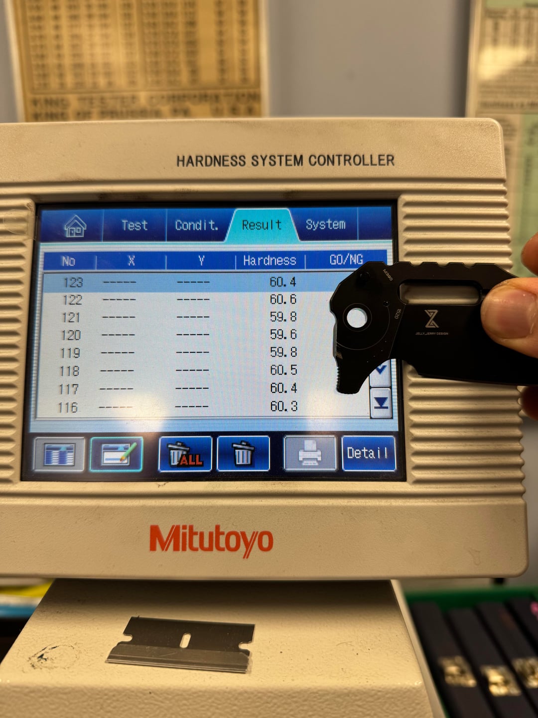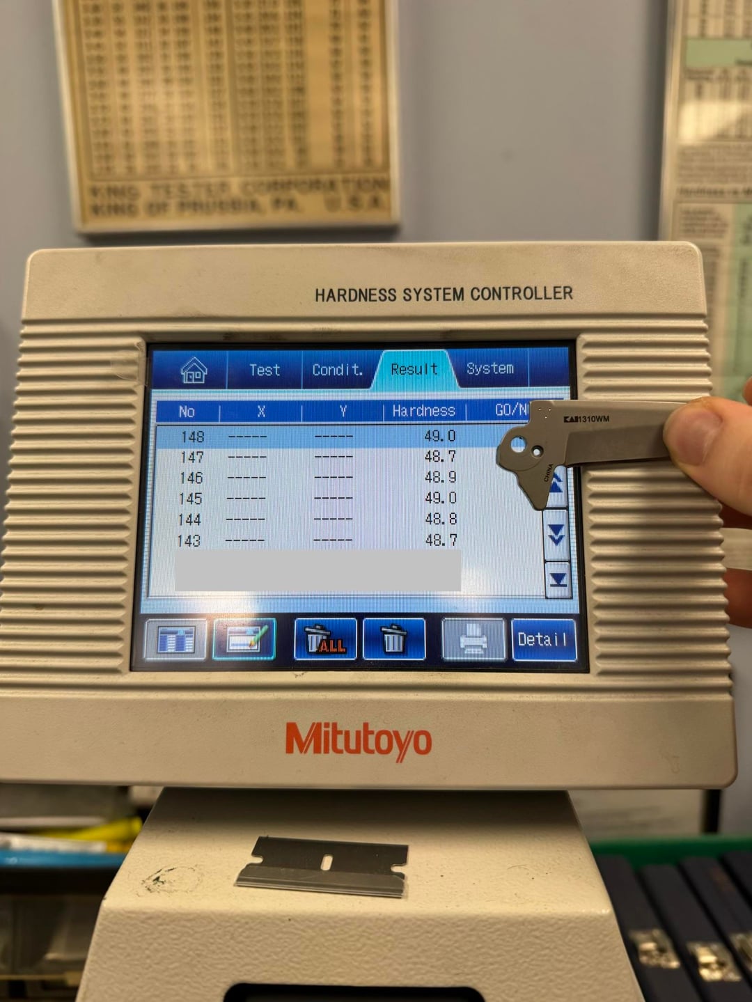 Verified on 51.88, 59.8, 62.7 HRC Verification Blocks.