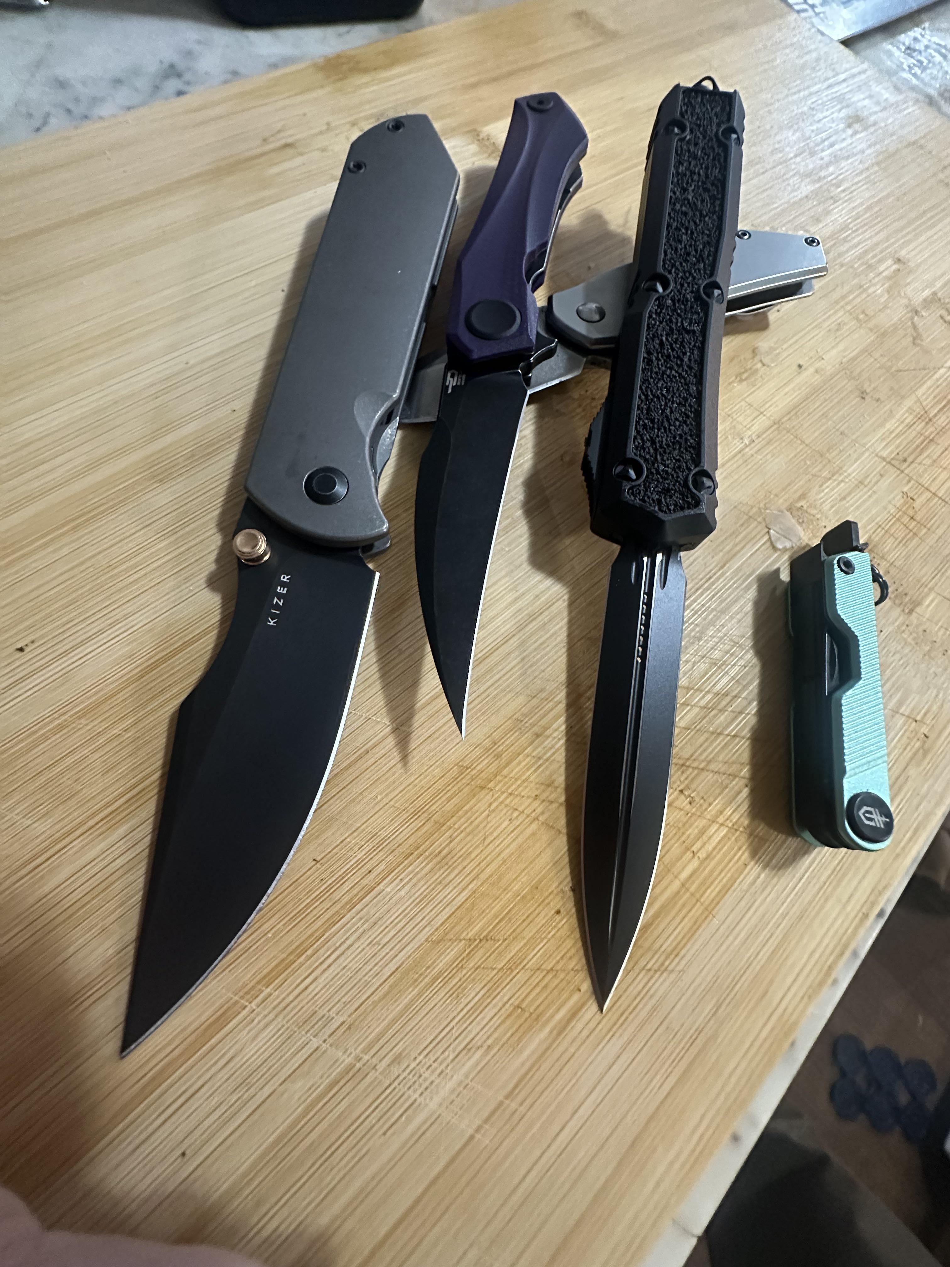 In KNIVES NKD! Kizer Harpoon folder, Bestech Ivy, and a MT Makora March 23, 2026 Also a gerber armbar to round it out, it was on sale and I needed a keychain multitool.All displayed on the back of my beloved workhorse, a Kershaw Valve.by defenseform KnifeKnife ClubKnives Prev Post Awesome find! March 23, 2026 Next Post This sheath is a game changer! March 23, 2026 Related Posts NKD! ABW Slipjoint frag pattern March 23, 2026 Gateway Baloney March 23, 2026 NKD! Knafs Lander 2 x Dark Mode 🩵 March 23, 2026Write A CommentYou must be logged in to post a comment.