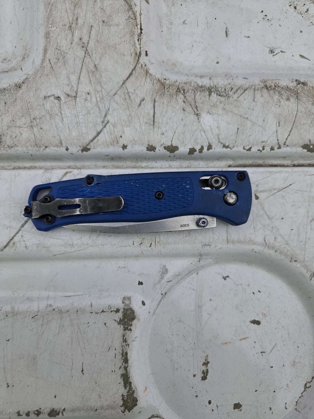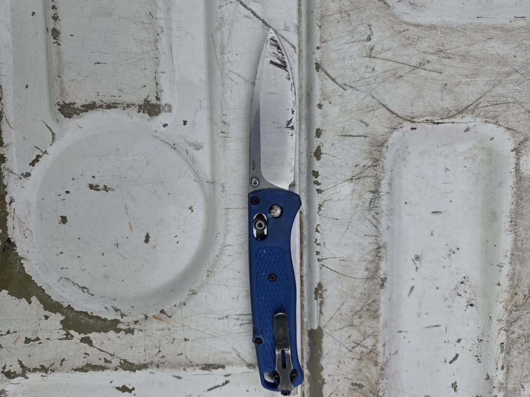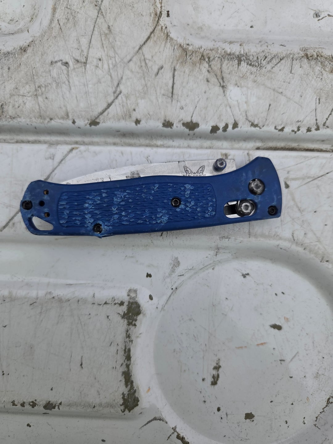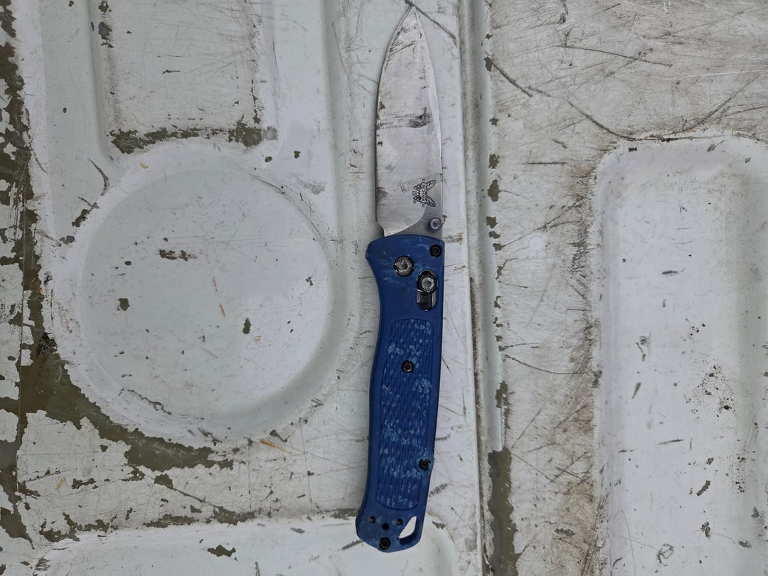 Found a bugout on the road while I was working. Found it open, the lock still works and I was able to close it. I called benchmade and they told me I could send it in for verification and service. They said $50 for new handles, if it's fake then I get a $50 credit.