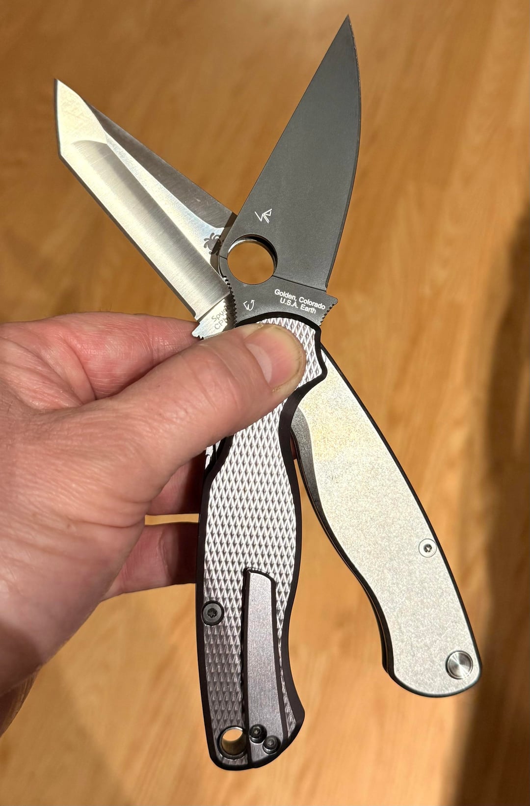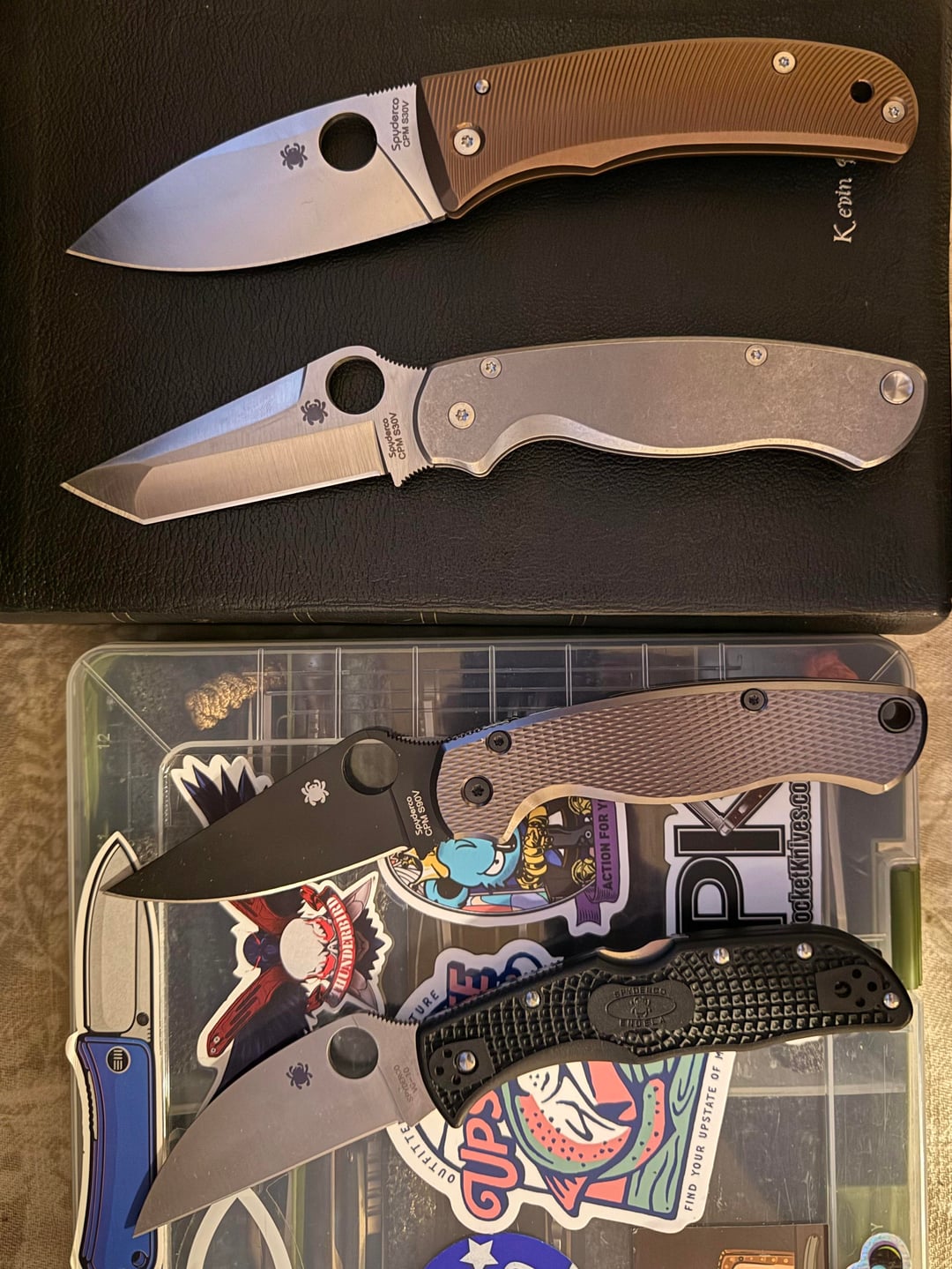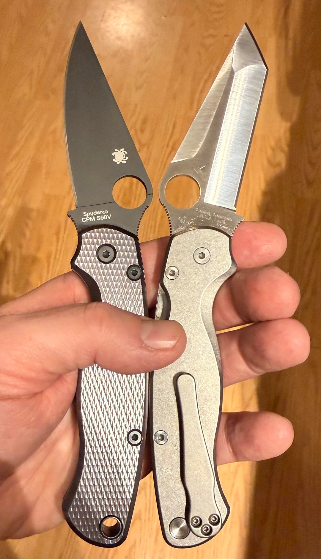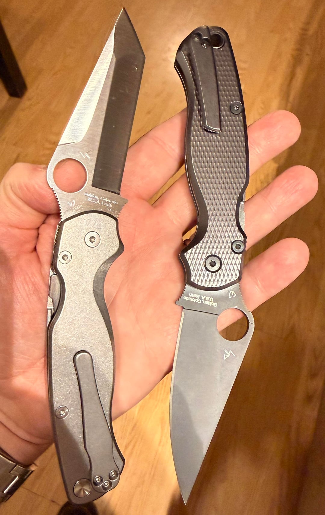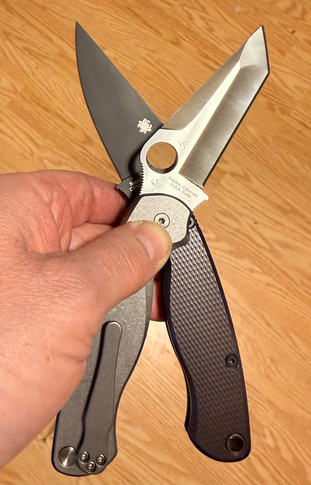 The next couple pics are just different shots of my 2 PM2βs together, celebrating that I finally have one, but now β not just 1, but 2 ππ; and the last pic is my little Spyderco family, so far (Endela & Bodacious).