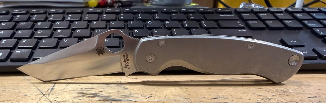 However, last night I received this beauty from a fellow swapper (ref. pic #1, Spyderco β PM 2: CPM S90V blade, black DLC; AWT Shadow Chrome anoβd aluminum scales & matching AWT pocket clip); the beginning of last week I received my dream Spydie from a swap (ref. pic #2, Spyderco β PM 2-T, w/a full titanium mod.: CPM S30V satin finished, compound ground tanto blade; Flytanium scales, lanyard tube & MXG clip).
