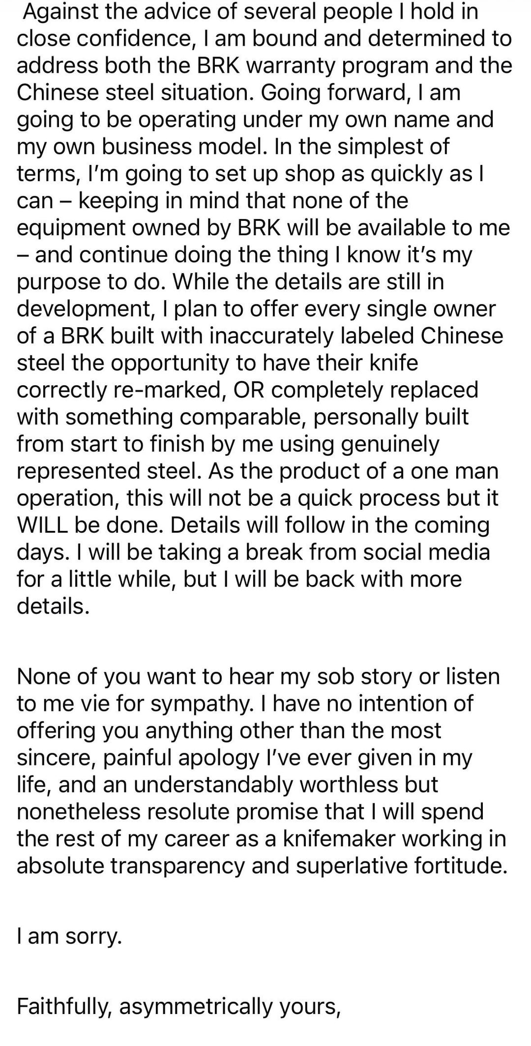 No dog in the fight but I’m not buying knives from anyone involved in this dumpster fire.