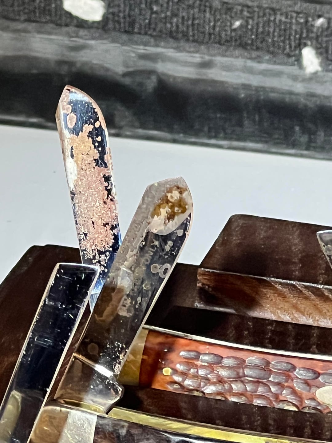 None of these have ever been carried but while they were stored over the past few decades they’ve gotten this rust or whatever on them. I’m not an expert but would love to remove it. What’s the best way to get them to remove the storage rust?