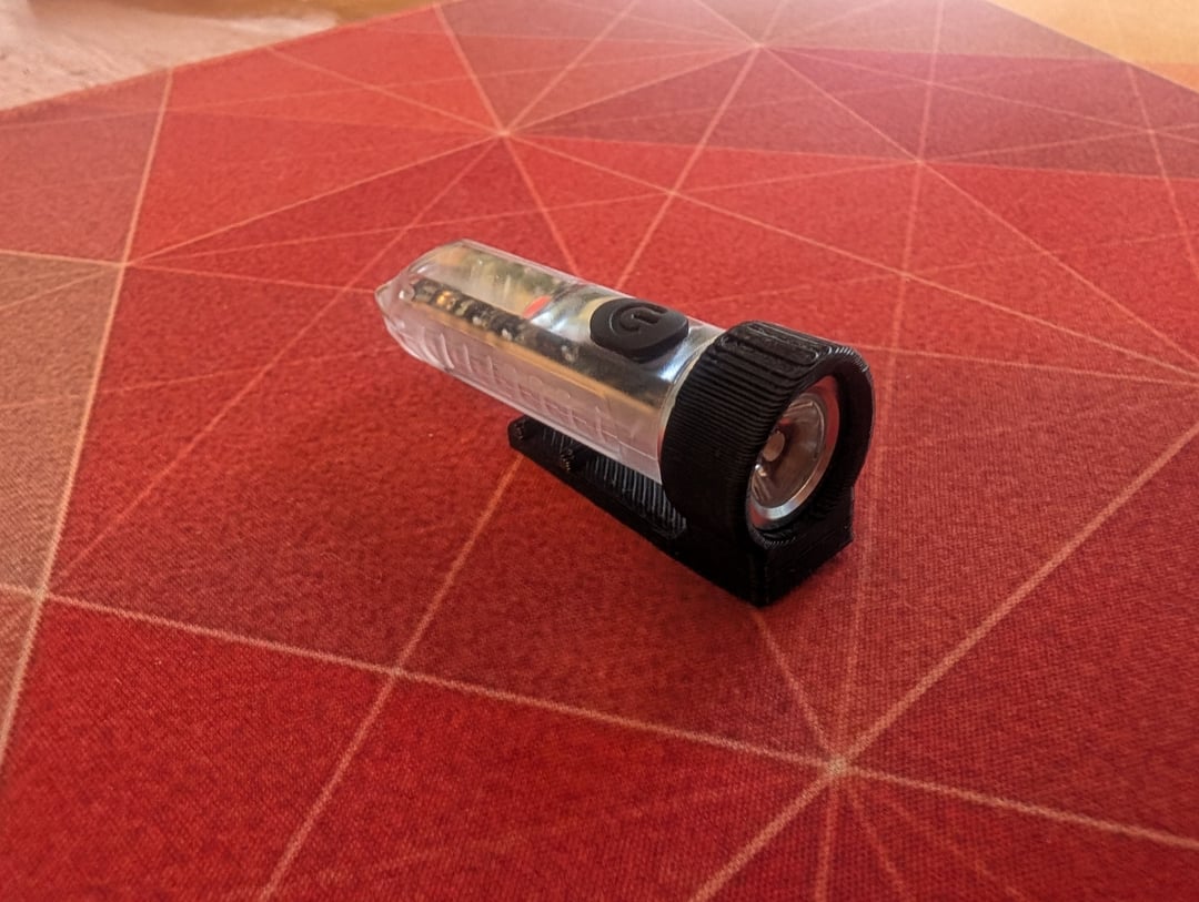 I designed this little clip to attach to an aliexpress keychain flashlight. This way, I can use it as a headlight on my ballcap, similar to how people use the RovyVon A5 for UL backpacking.