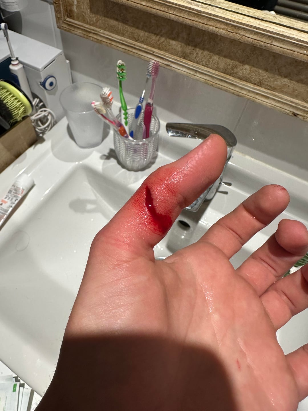 Thats a good cut man. Knives be knifing. Mistakes happen and things brake. Top brand knives and gas station knives have all been great, or dangerous junk. Sometimes, ya just get unlucky.