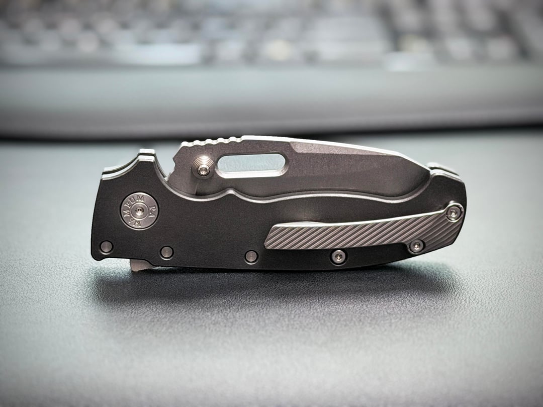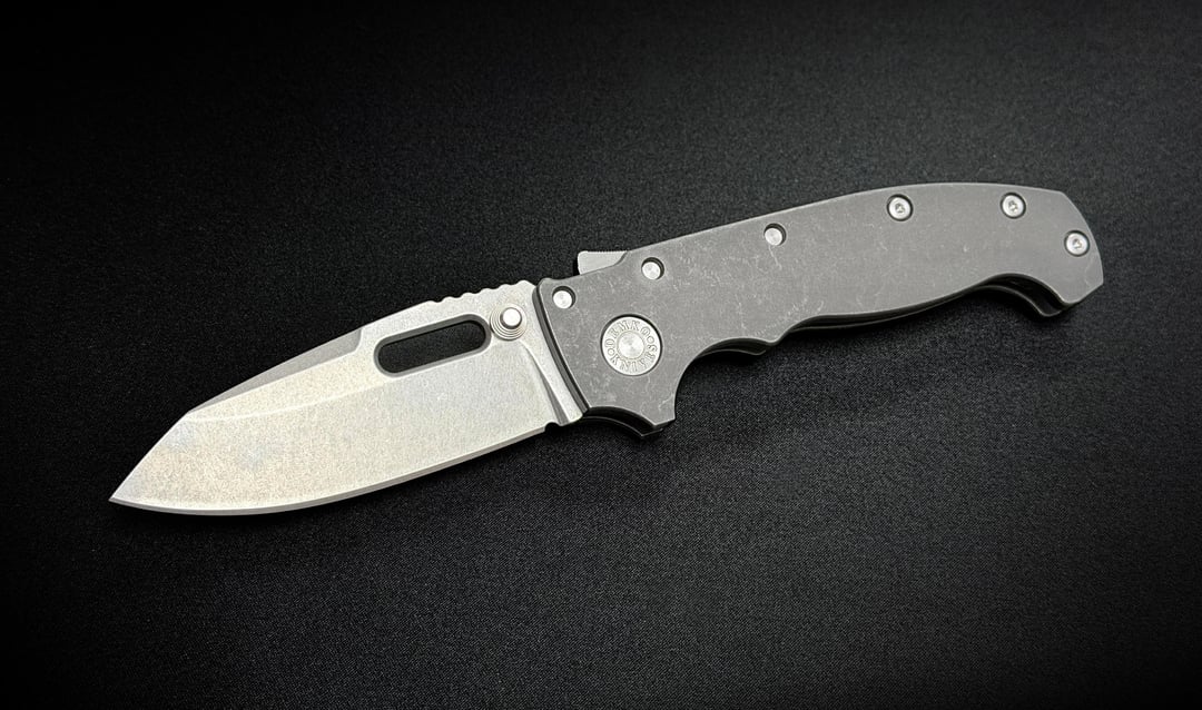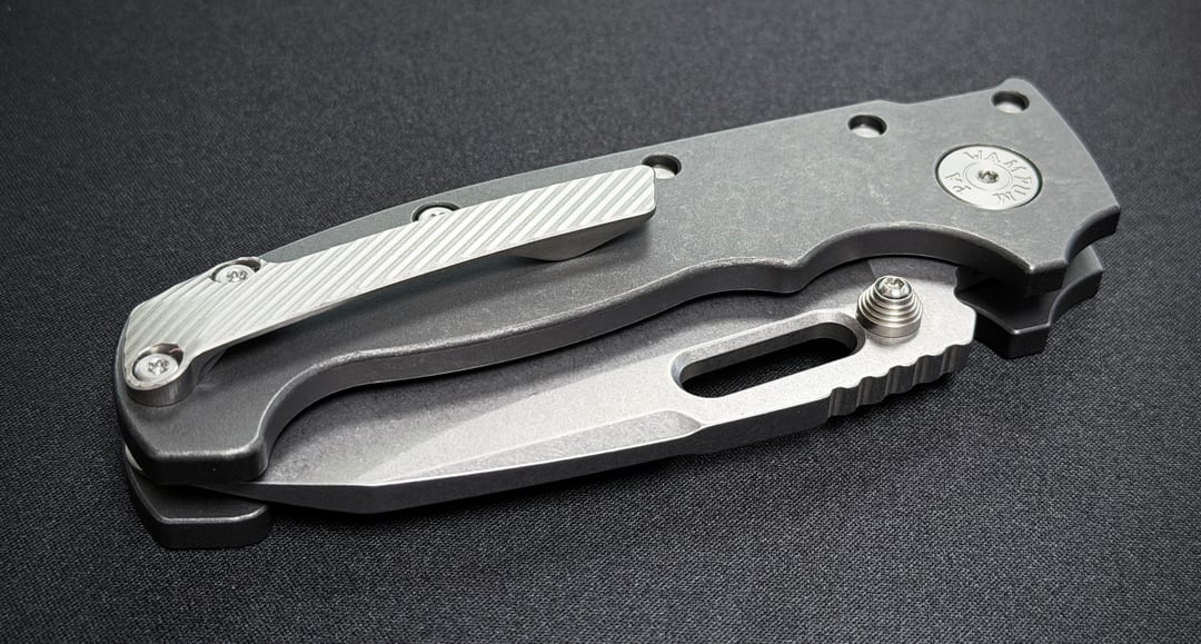 Demko AD20 Magnacut Whale Shark with Rockscale Designs Dark Wash Titanium Scales and Original Goat Milled Titanium Pocket Clip in MM2 Texture