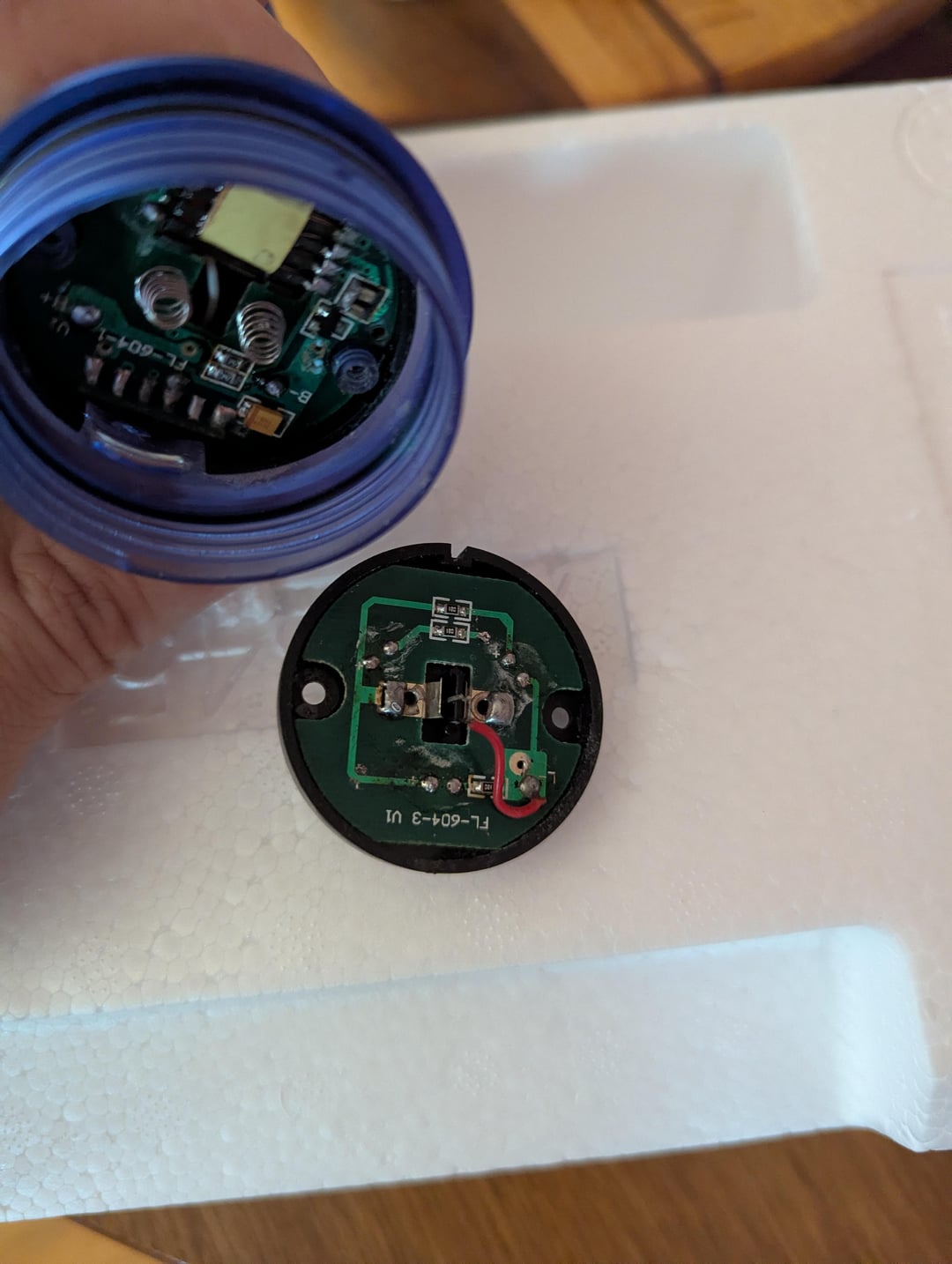 this unbranded light used all three technologies, LED, fluor, tungsten. 4aaa's left in it for years ruined it. I was ripping it apart to get to the mercury hazmat and I thought I should share.