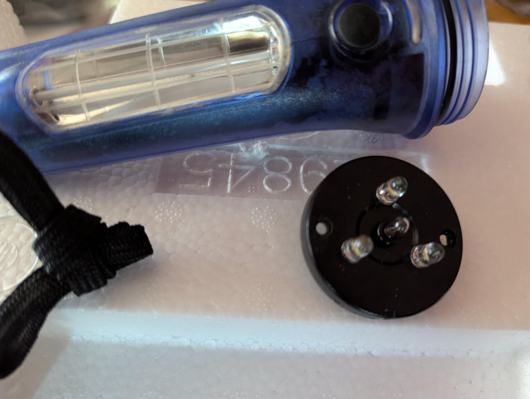 3 7k or so leds, the center looks like an LED but it's a baby tungsten bulb. It's old, but even when I got it, it was pretty mid, it did all 3 things poorly. I liked it for the tech demo, I think I might have gotten it from American science and surplus about 15-20 years ago