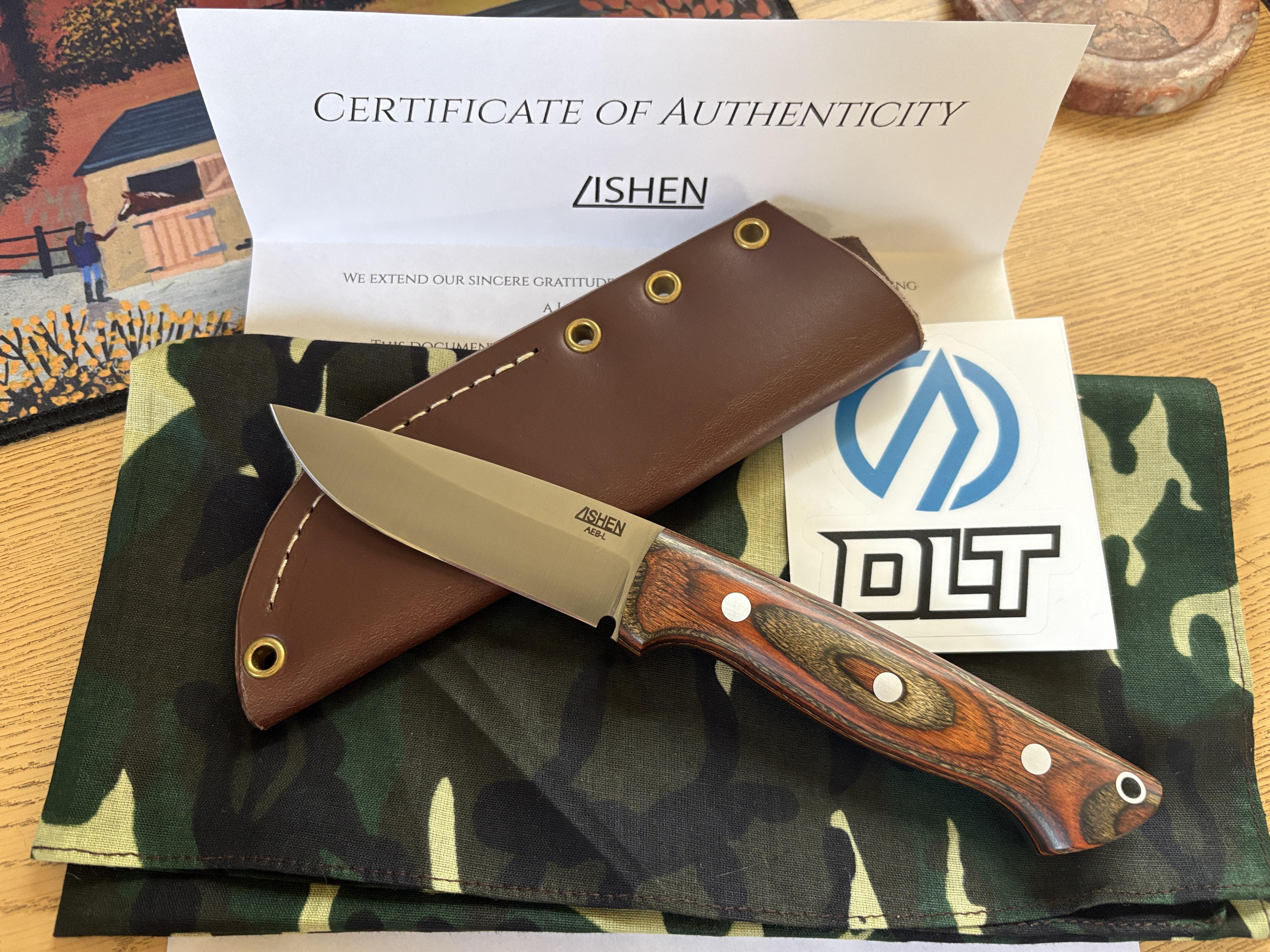 I love Christian Lishen's work and I'm very happy to have received this in the mail today from his most recent DLT drop. The dymalux is very well done, was worried about it possibly being too slippery but that's not the case at all, it has good grip to it. perfect size and shape, just shy of a 4 inch blade, and a tad shorter than a 5 inch handle. looking forward to trying it out in the field next whitetail season. will be doing plenty of kitchen work with it until then
