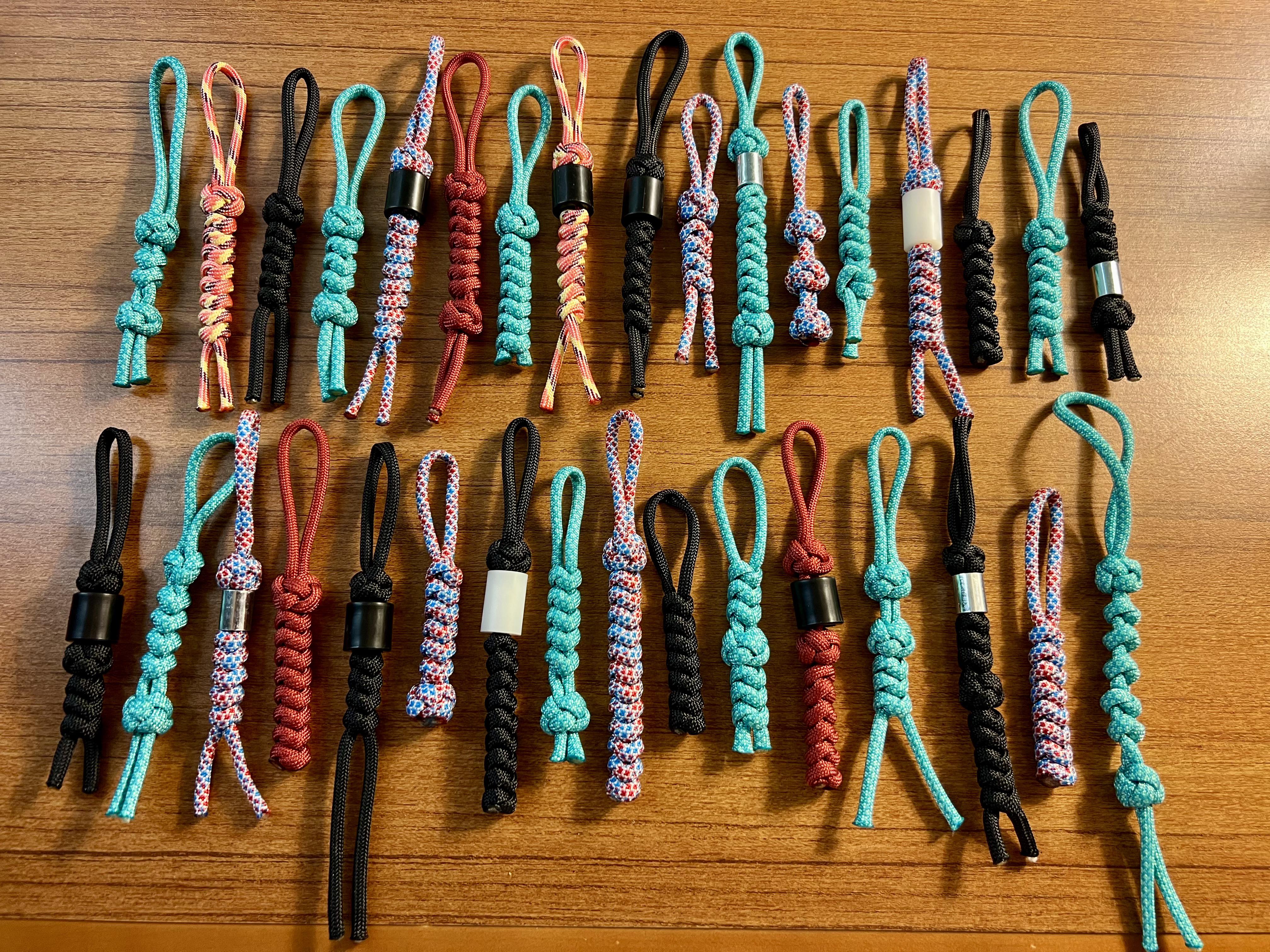 All Paracord Lanyards I made with plastic and metal spacers I got for like 20 cents at a local hardware store.