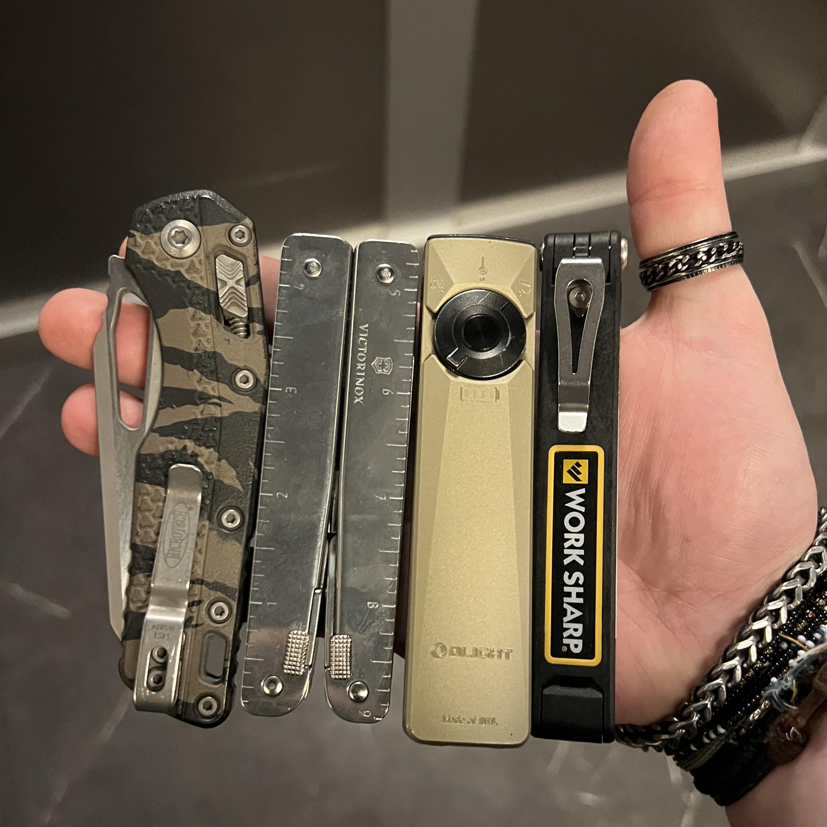 In EDC 4 musketeers of EDC March 27, 2026 I have recently picked up the Work Sharp folding field sharpeners and its synergy is unparalleled with my primary EDCLeft to RightMicrotech MSIVictorinox SwisstoolOlight Arkpro ultraWorkSharp folding field sharpenerby keegenh23 EDC Prev Post 29 Narrowed it down March 27, 2026 Next Post NKD. Spyderco Ikuchi. March 27, 2026 Related Posts #tgif My early 2000’s Expedition and CJRB Pyrite Light March 27, 2026 Student / Bike Tinkerer EDC – what am I missing? March 27, 2026 29 Narrowed it down March 27, 2026 2 Comments AutoModerator 2 hours ago Thank you for posting to r/EDC! Include a detailed item list (make/model) within **1 hour** of submission. Lists can go in the title, a comment, or the image. Posts without lists will be removed. If you have already provided a list, not further action is needed, thanks | [FAQ](https://www.reddit.com/r/EDC/wiki/faq)*I am a bot, and this action was performed automatically. Please [contact the moderators of this subreddit](/message/compose/?to=/r/EDC) if you have any questions or concerns.* sum1sumwher 2 hours ago I want that knife so baddddddWrite A CommentYou must be logged in to post a comment.