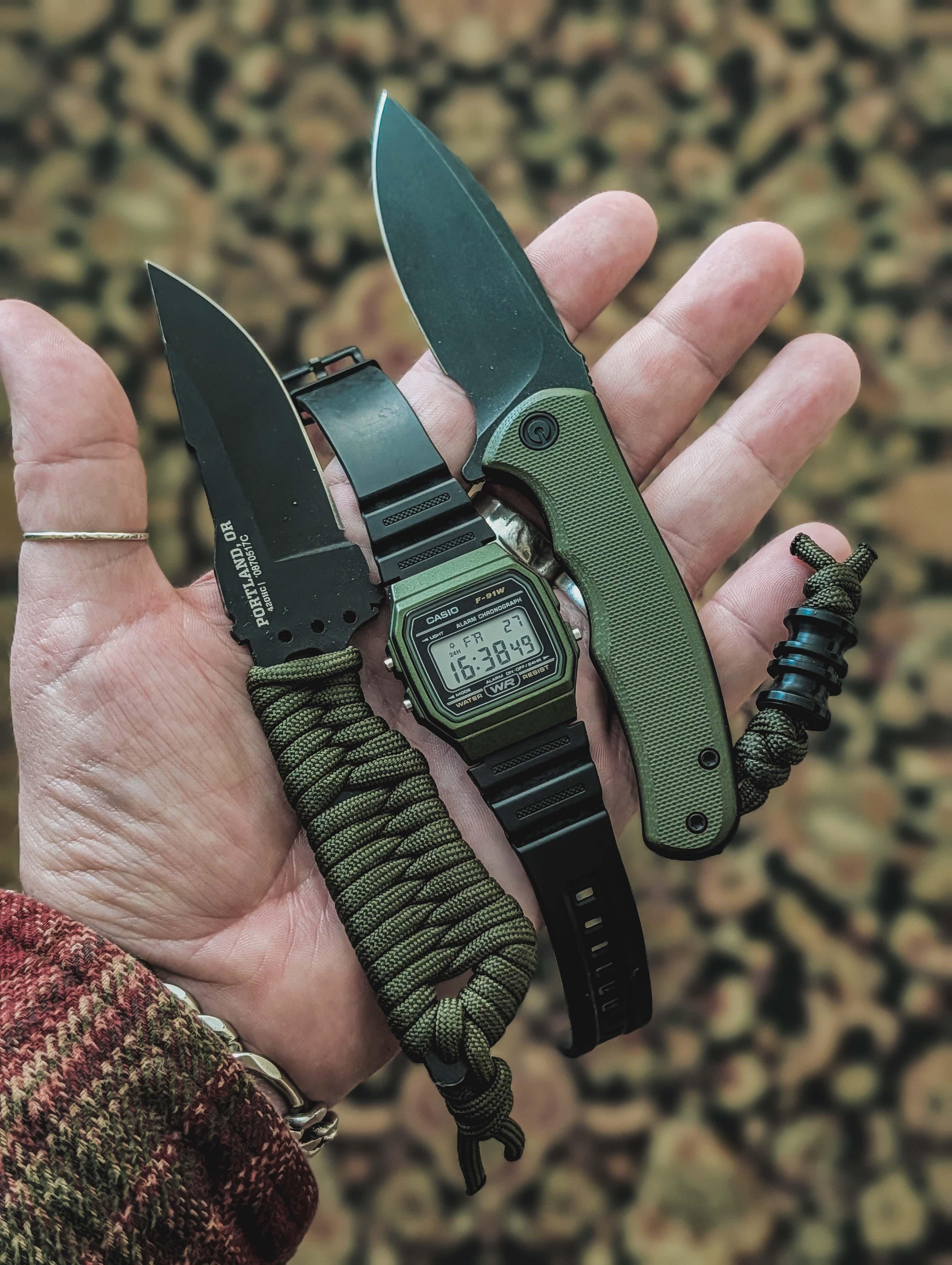 In EDC Friday OD Greens March 27, 2026 Gerber Ghost Strike w/ paracord wrap, Casio F91W w/ AE1200 strap, Civivi Mini Praxis w/ Urban Carvers Knight bead. 💚🖤Hope all y'all have a great weekend. ✌️by AS_Pearson EDC Prev Post Would you spend the 235$? March 27, 2026 Next Post How do you take care of your batteries? March 27, 2026 Related Posts They’re tools, not trophies. March 27, 2026 2026 Carry March 27, 2026 Klein Scissors 2100-7 Custom Sheath March 27, 2026 1 Comment AutoModerator 2 hours ago Thank you for posting to r/EDC! Include a detailed item list (make/model) within **1 hour** of submission. Lists can go in the title, a comment, or the image. Posts without lists will be removed. If you have already provided a list, not further action is needed, thanks | [FAQ](https://www.reddit.com/r/EDC/wiki/faq)*I am a bot, and this action was performed automatically. Please [contact the moderators of this subreddit](/message/compose/?to=/r/EDC) if you have any questions or concerns.*Write A CommentYou must be logged in to post a comment.