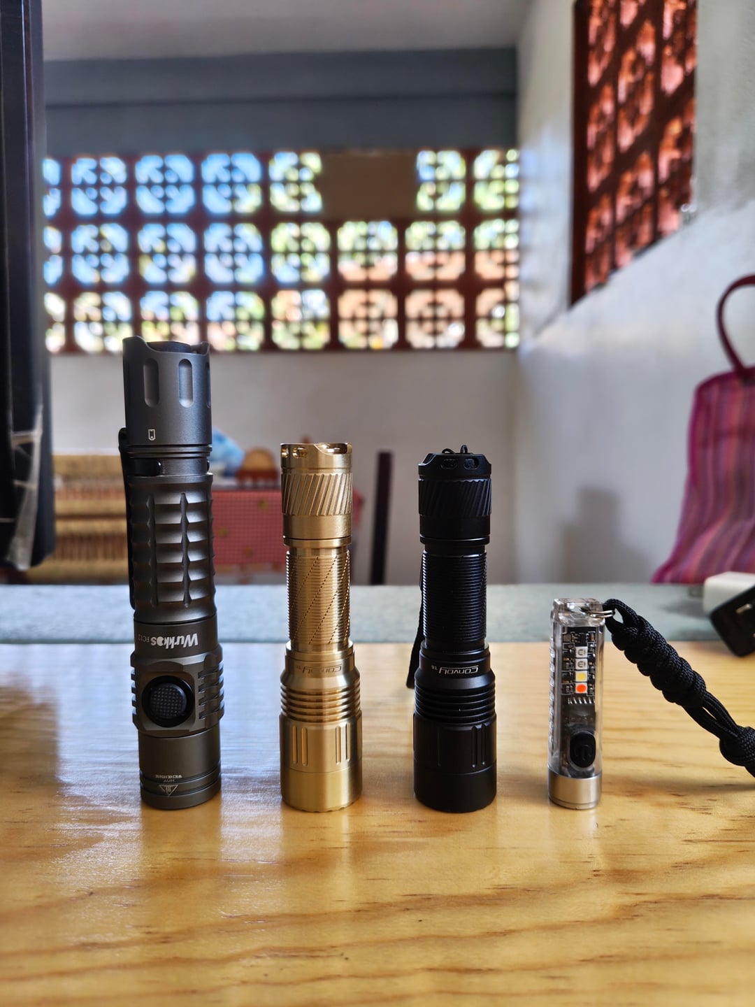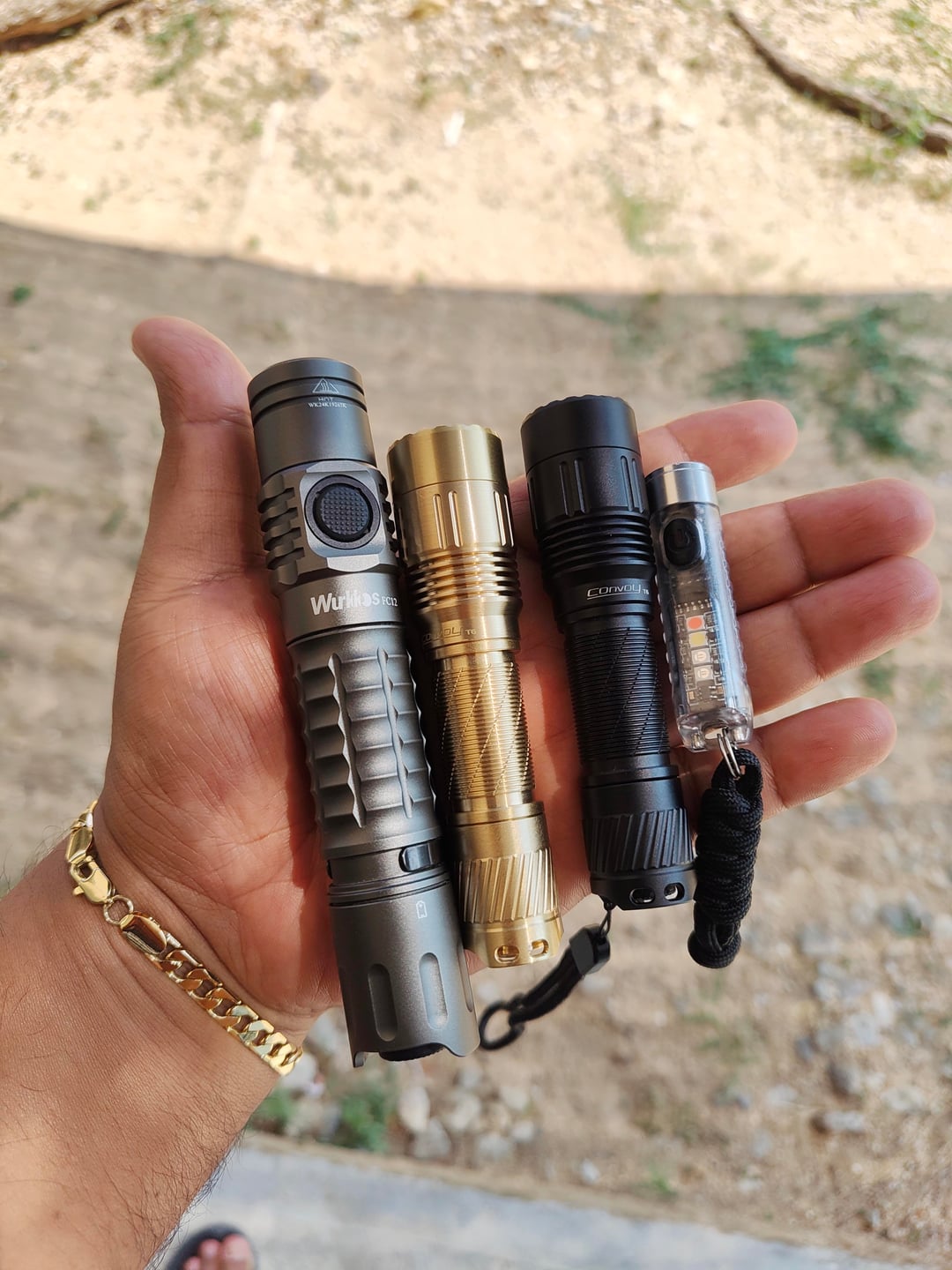 Soy nuevo aquí, solo quiero mostrar mis linternas. La Wurkkos FC12 la tengo hace 2 años, la pequeña de llavero (sin marca) lleva 8 meses conmigo y las que acabo de adquirir son las Convoy T6, una para mí y otra para mí padre.