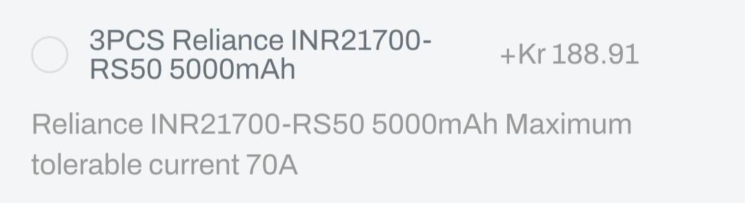 In Flashlight EVE 21700 50PL or Reliance INR21700-RS50 for Convoy 3x21D? March 28, 2026 Hi! Im thinking about buying A Convoy 3x21D. But havent choosed batteries yet. Should I go with Reliance INR21700-RS50? Or EVE 50PL?Or something else? by stock_pro flashFlashlightlight Prev Post NKD! March 28, 2026 Next Post My EDC tool kit March 28, 2026 Related Posts Help with kit for custom light March 28, 2026 Malkoff Glamour Shots March 28, 2026 Finally got Zebra. March 28, 2026 1 Comment RettichDesTodes 2 hours ago Doesn’t matterWrite A CommentYou must be logged in to post a comment.