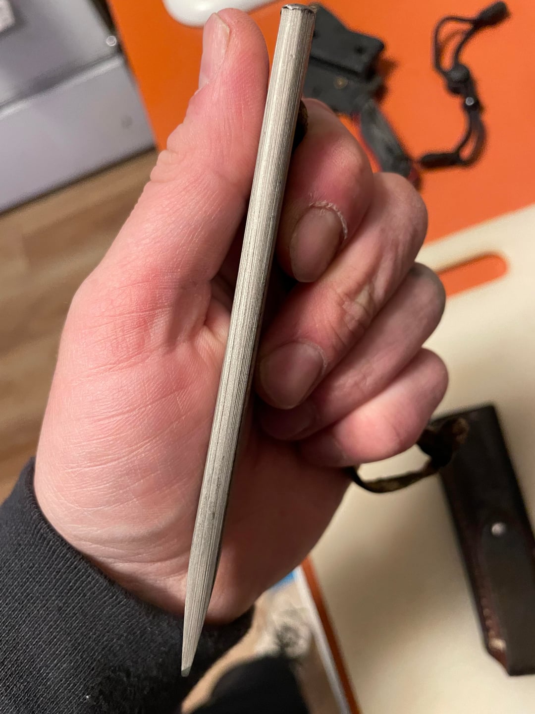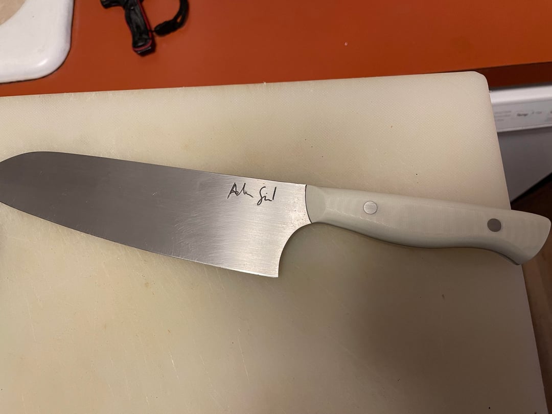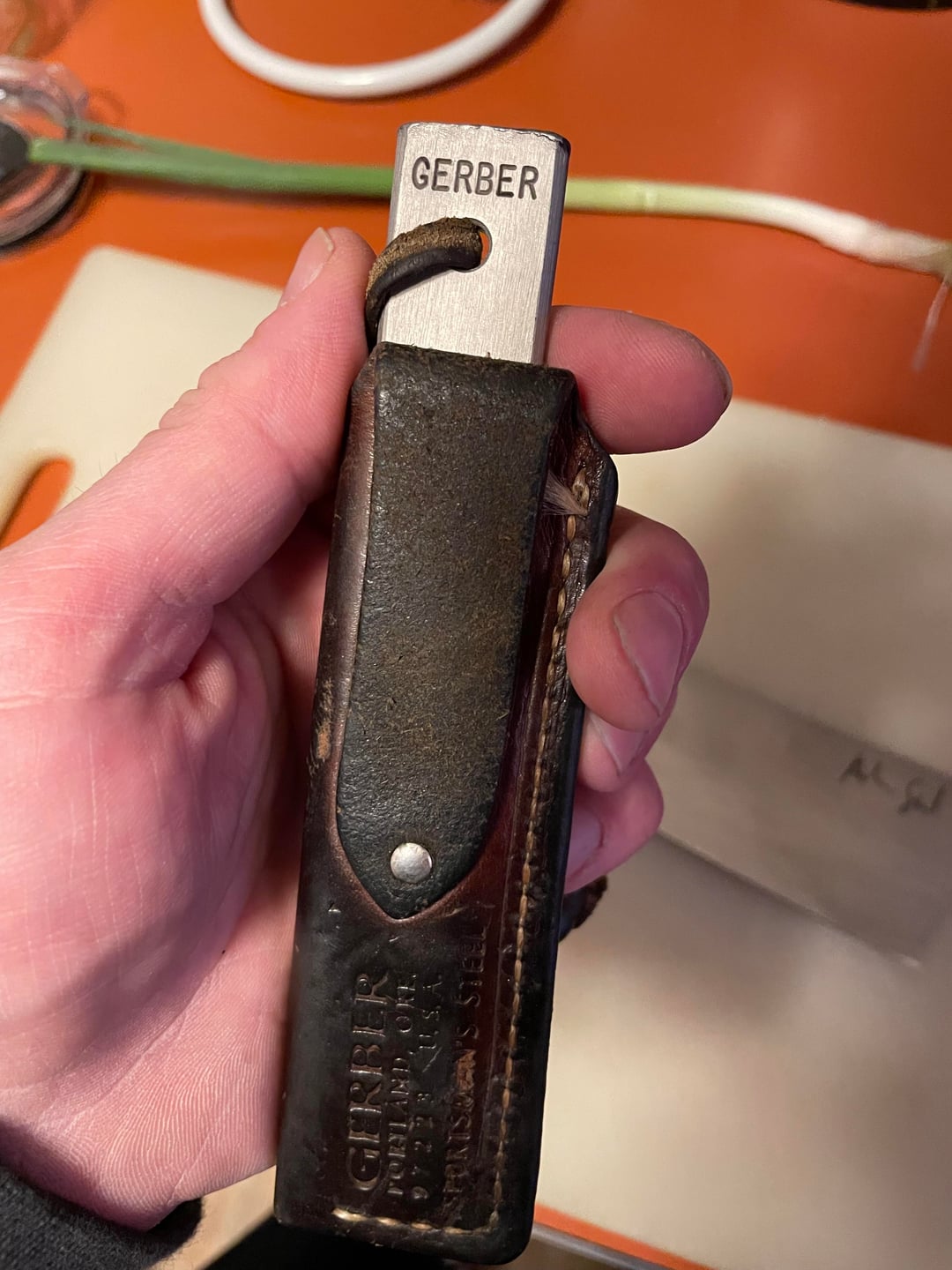 My grandpa had a saying anytime someone asked for a knife, he’d always quickly reply “Do I have my pants on?”while handing the knife over. I found this tucked away while getting my grandparents estate sale put together last year and thought you guys might think it’s cool. Bonus pic Station Knifes Kirchen knife.