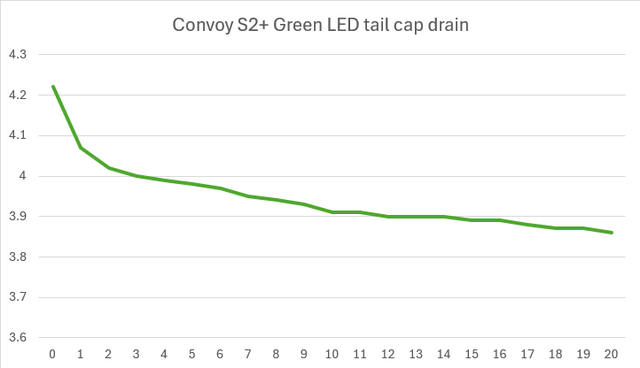 I could not find a good answer on how much the LED tail switch drains over time, so I made a graph of it.