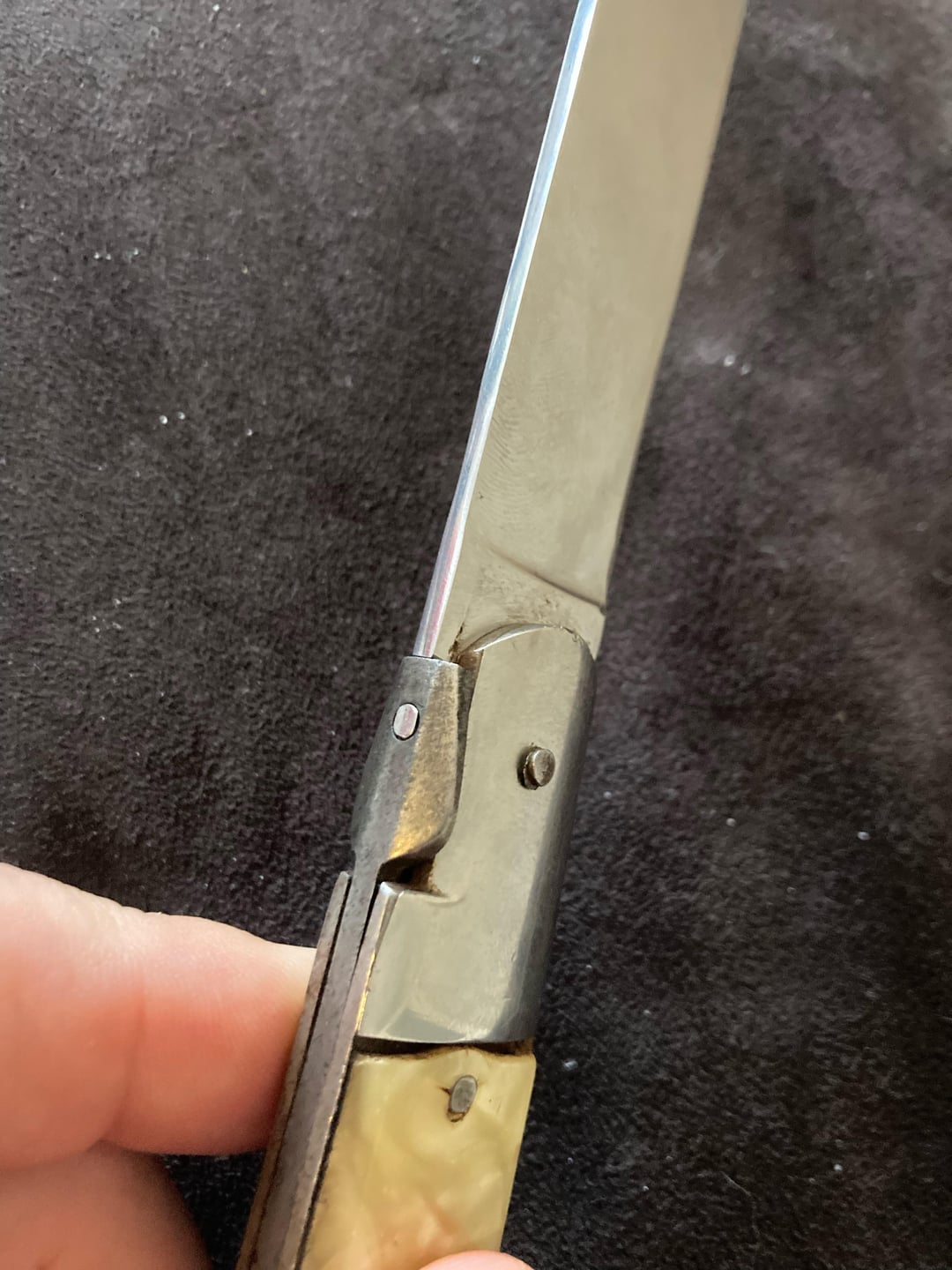 In KNIVES How does it close? March 29, 2026 Found my dad’s old knife. Folded out easily, but can’t figure out how to close it. No branding, no visible locking mechanism as far as I can tell. Any ideas? by FlubMonger KnifeKnives Prev Post Man Pouch 369g/12.7oz March 29, 2026 Next Post FINALLY! I get rid of lockstick in my PM2 ! March 29, 2026 Related Posts could anyone identify this specific knife and tell me how much is it worth? (i’m 100% sure it says andujar but idk the specific model) March 29, 2026 NKD – Emerson Mini Sheepdog March 29, 2026 Taylor Made Custom March 29, 2026 2 Comments bmbreath 2 hours ago I think you lift the lock up at the top of the blade. SarcousRust 2 hours ago Pull the ‘spoon’ with the pin in it away from the blade.Write A CommentYou must be logged in to post a comment.