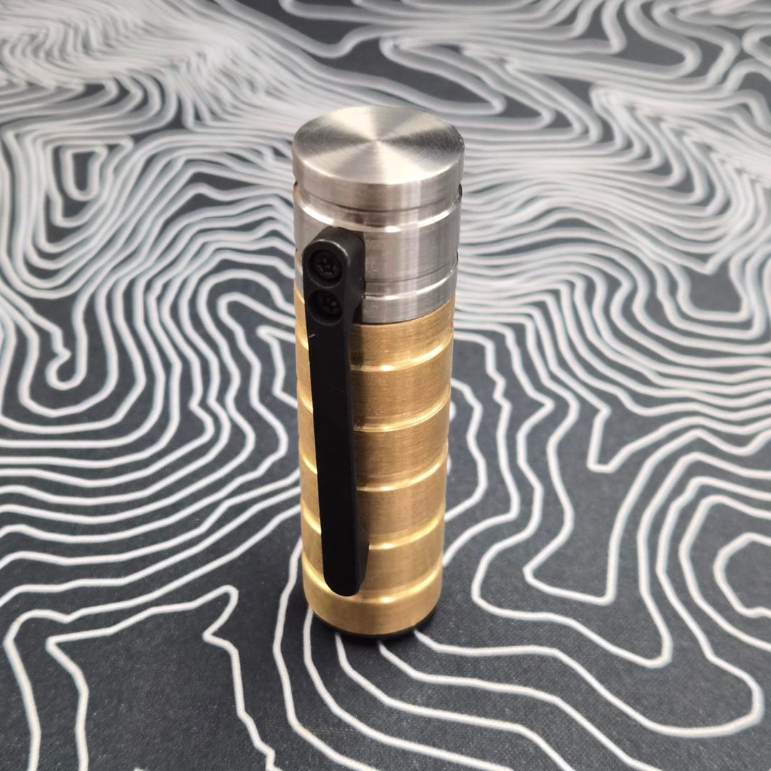 By BLCMetalWorks on Etsy, although I'm not sure I recommend the store yet. The two screw holes in the cap (for the clip) are not aligned to the body, I've messaged asking for a new cap to be sent and haven't yet heard back. Also it's come uncapped a couple of times while clipped in my pocket.