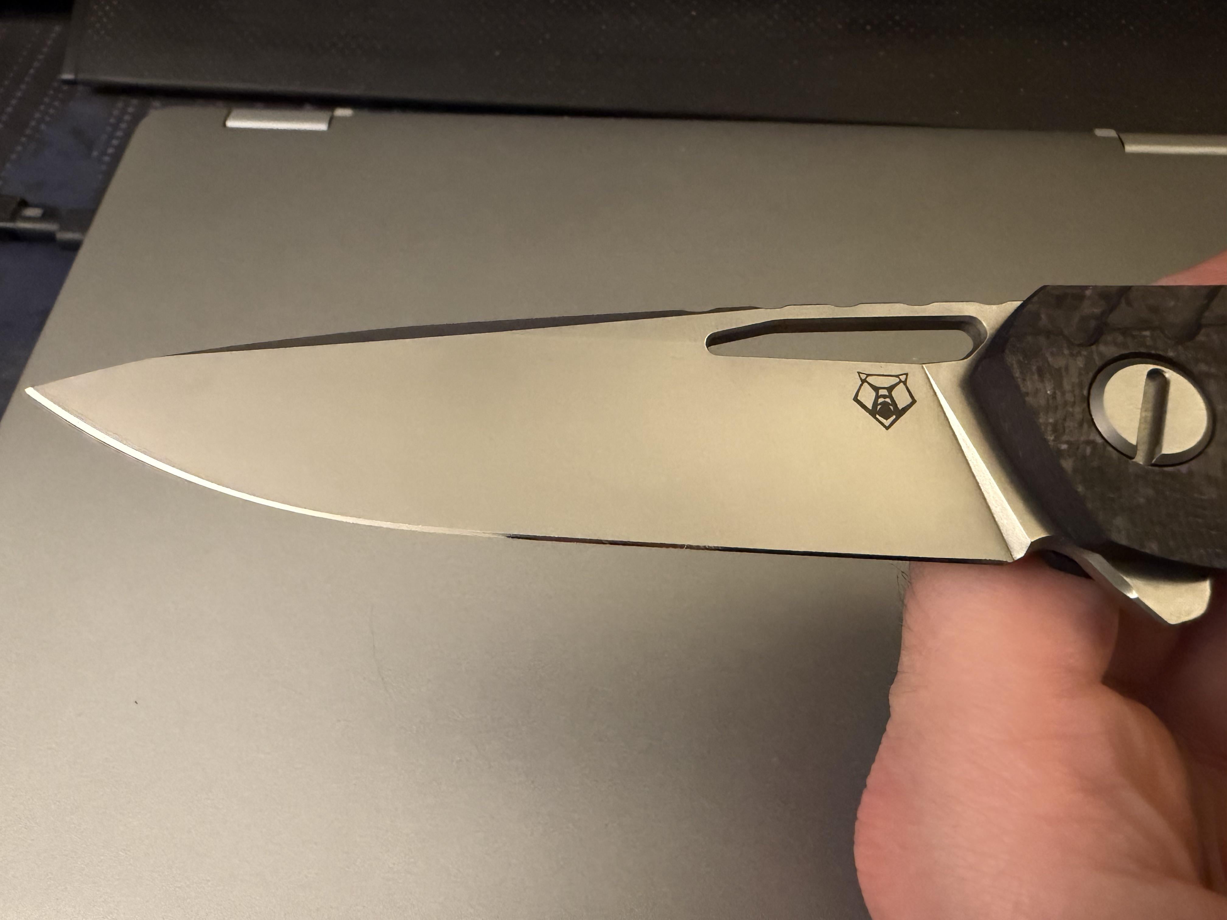This is my Shirogorov 111 in purple CF and S90V. It is my understanding that ten of these exist in the world, so naturally I’ve been carrying it and recently dropped it onto concrete and chipped the tip.